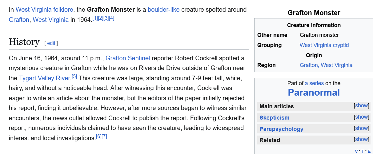 >>549569884>>549572694>what is a snallygasterits a cryptid from the WV area.fo76 has a soft cryptid theming because hey realized there were a bunch of somewhat well known cryptids in WV and its a spooky lonely forest place with mountains and stuffvery "conveniently" a bunch of things mutated into creaures that resembled the cryptidsthen they just added the real unironic mothman and flatwoods alien (shit design imo) and wasted mothman by making his followers a generic deathcult that you just shoot and loot with no real culture or anything