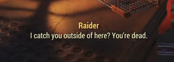 grr i am a nu-fallout raider!! i am a bad guy and i shoot stuff and drugs!! evil!!! how does our organization actually work?? shut up!!! blood!! killing and stuf!!! im a rust raider!!! we raid people who have literally nothing of value!!! we are the metal slicers!!! we slice people!!! metal scrap rads rust devil blood!!!! what do we even do all day?? we are raiders!! we decorate a place with scrap and we patrol it all day!! we sit down on the raider couch and have a raider beer!! we leave notes behind to our raider friends to talk about raider stuff!! thats it!!