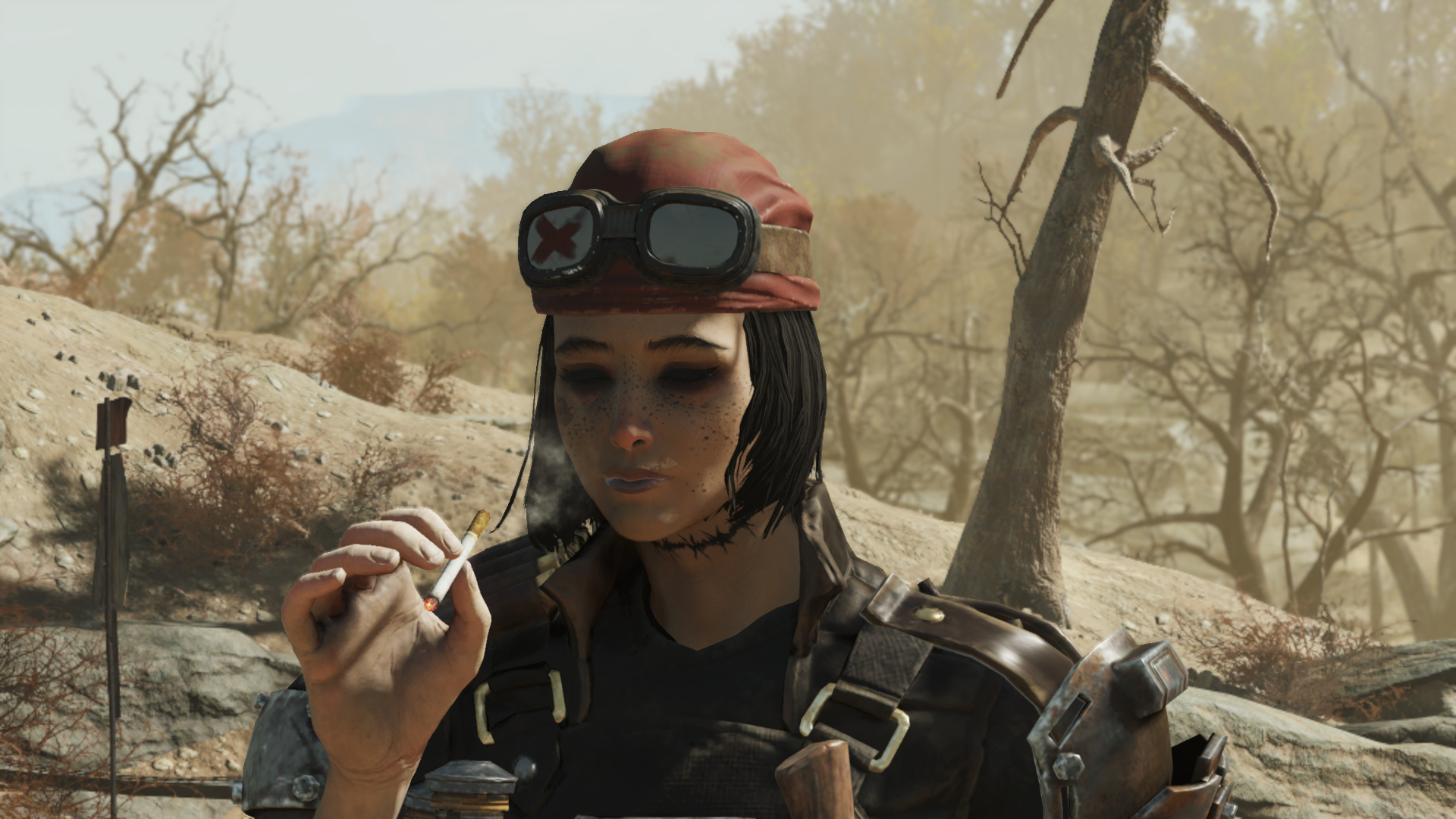 Hey, guys. There is my Fallout OC, a mercenary female ghoul named Gas Mask. Say something nice about her.