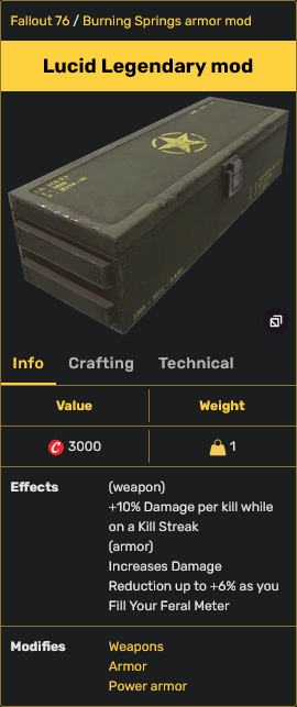 >>549946791It was good back when the game didn't have 500 perk cards that gave you damage resistance and it's still technically the one-size-fits-all best defensive legendary but yeah its kind of pointless now. I was thinking of switching to assassins but even that is pointless now that half of people are ghouls anyways