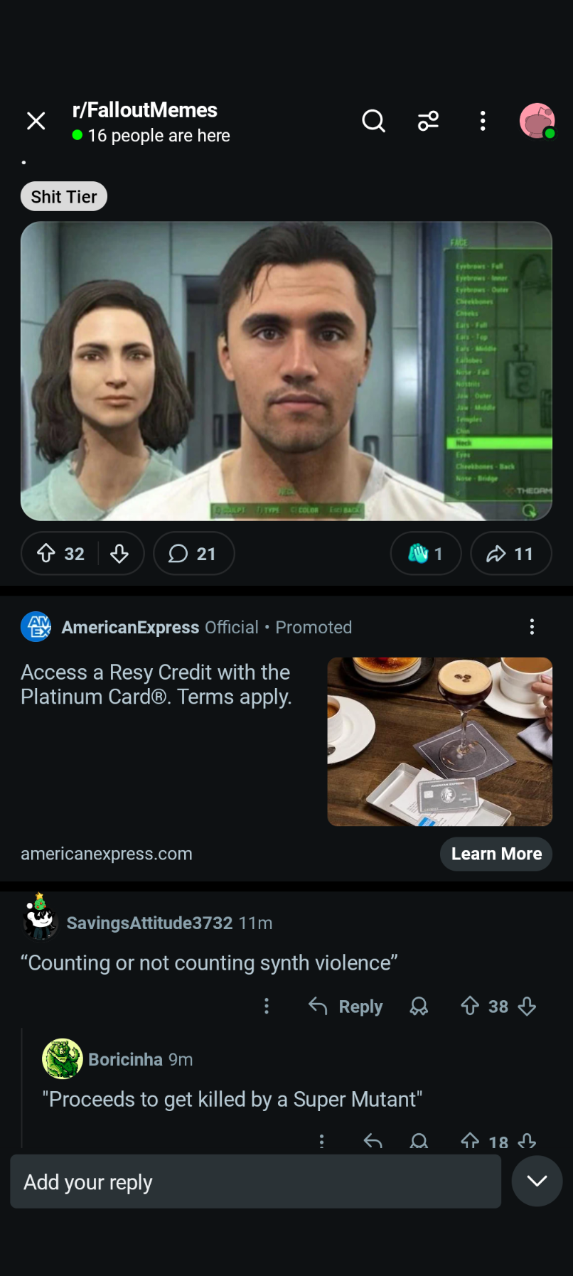 >>549552175crazy how ugly the guy and the girl is for 76, the assualtron literally has no competition