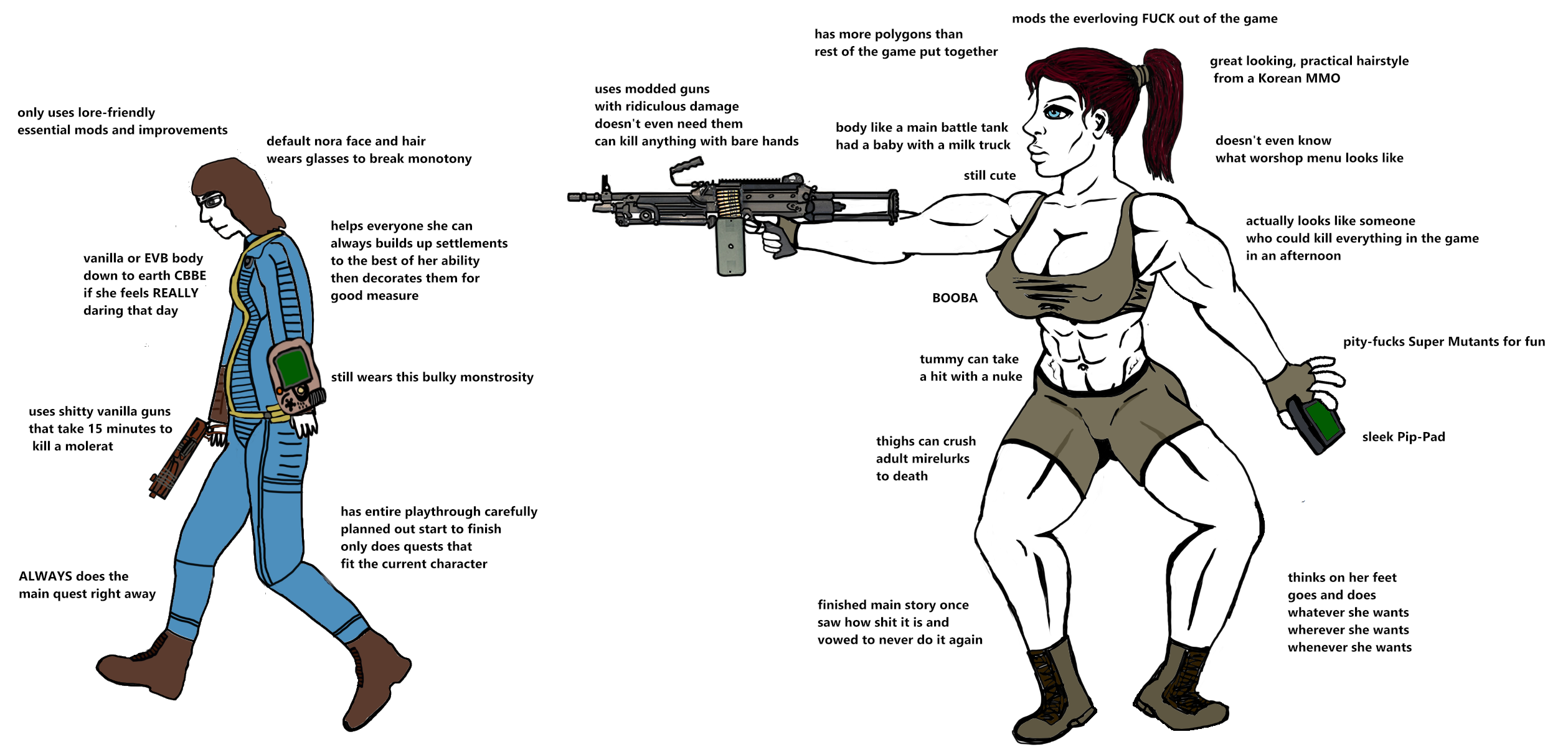 >>549972148I always wondered about when the Prydwen doctor complains to you that he has to constantly deal with outbreaks from soldiers "fraternizing with nonhumans"It's gotta be female ghouls, right?I'm gonna assume they all aren't out there banging Mirelurks