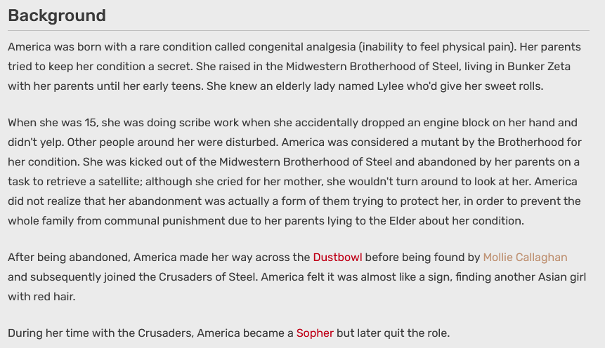 >>549583535>>549584258It's on par with every single piece of Beteshda writing since (and including) Oblivion.Like, did you expect any mature profound content from a team of retards that simply kept failing upwards for the last 20 years?