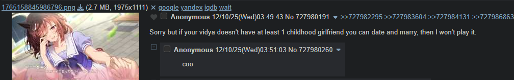 >>549593548>Seia thread>Concern posting starts Perhaps it's fate >>549593650>Heh, you guys are so slow, EoS for sure, guess it's overBecause half the posters in these threads ended up sticking to the other tab in the end.