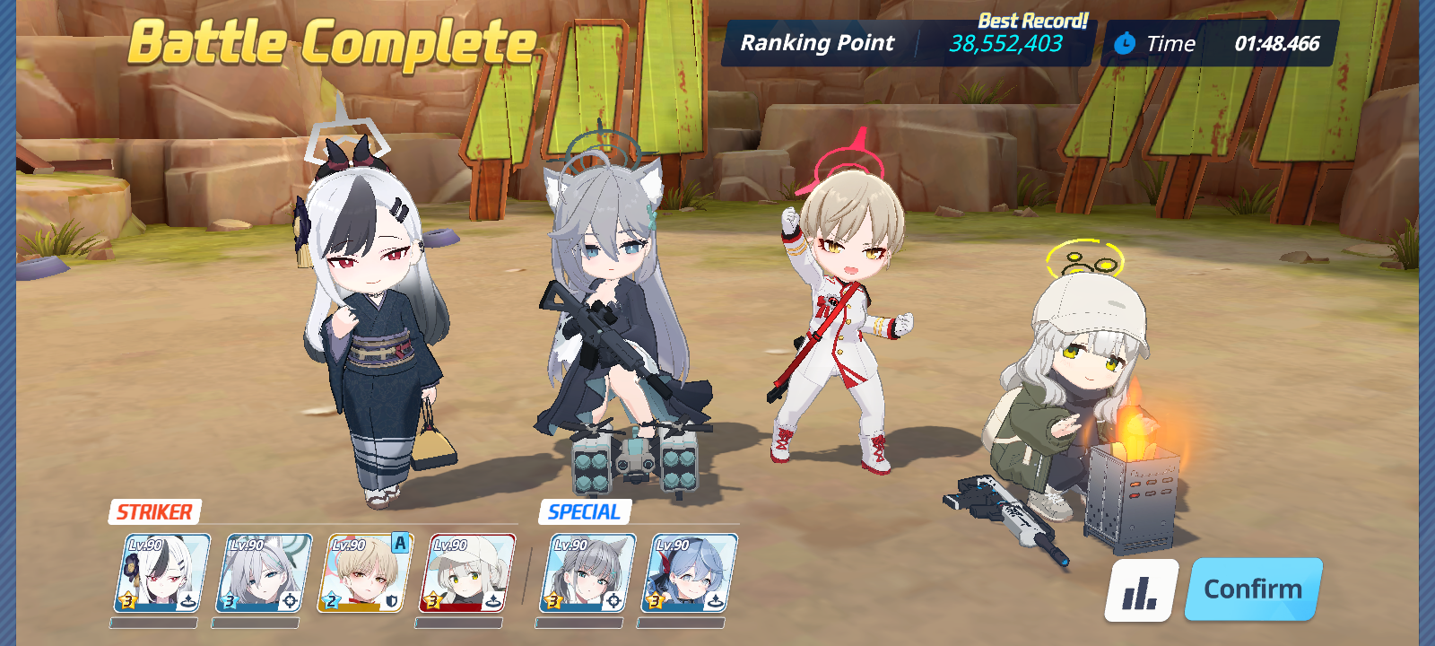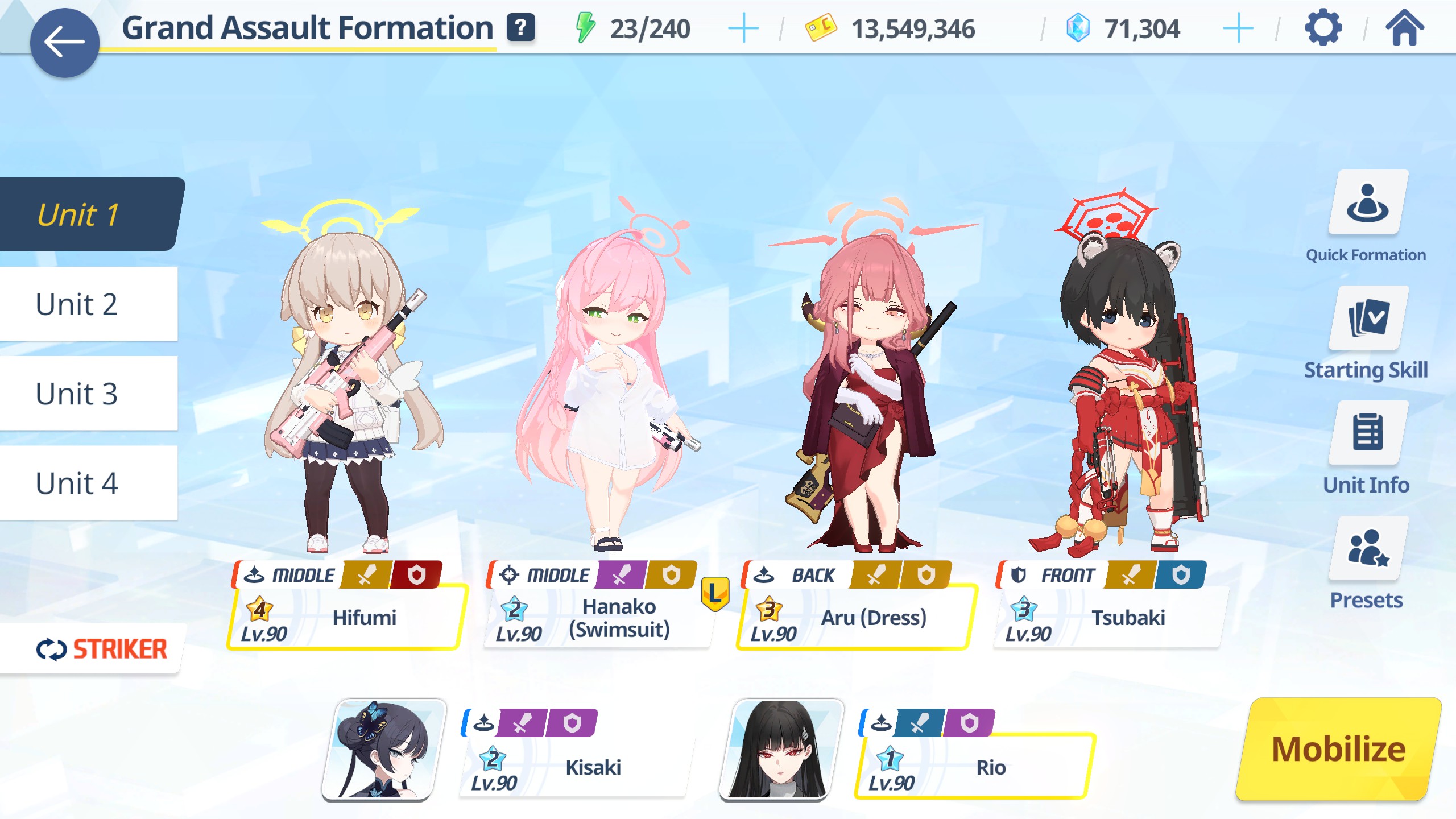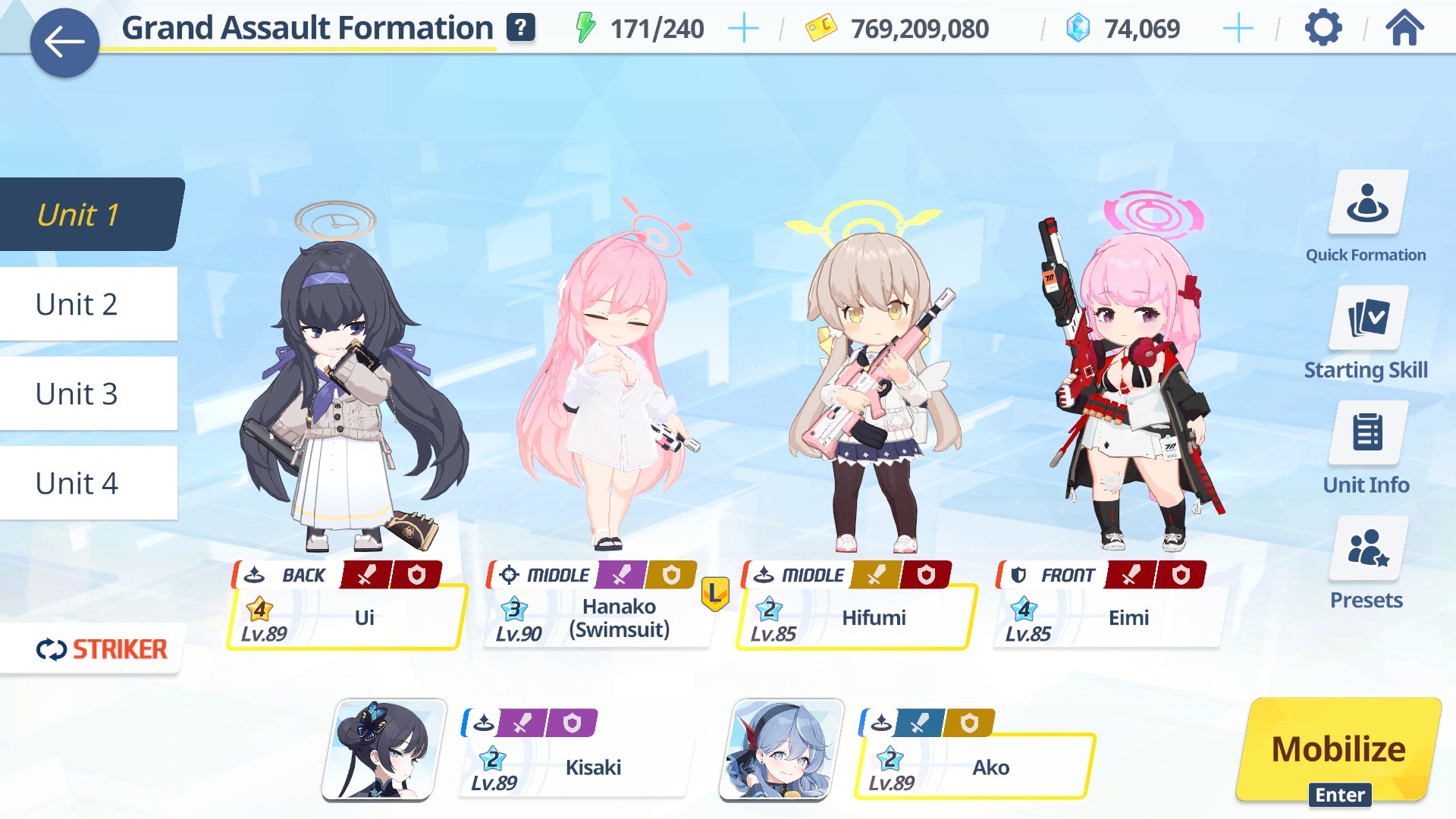 >>549613537No Ui, but I do have Seia. I'll swap her in, and try Ako. Problem is I was saving Ako for Kuroko. But I think my main priority is 1T on phase 1, I can clean up the rest.>>549613454Of course not, INS melted with that.