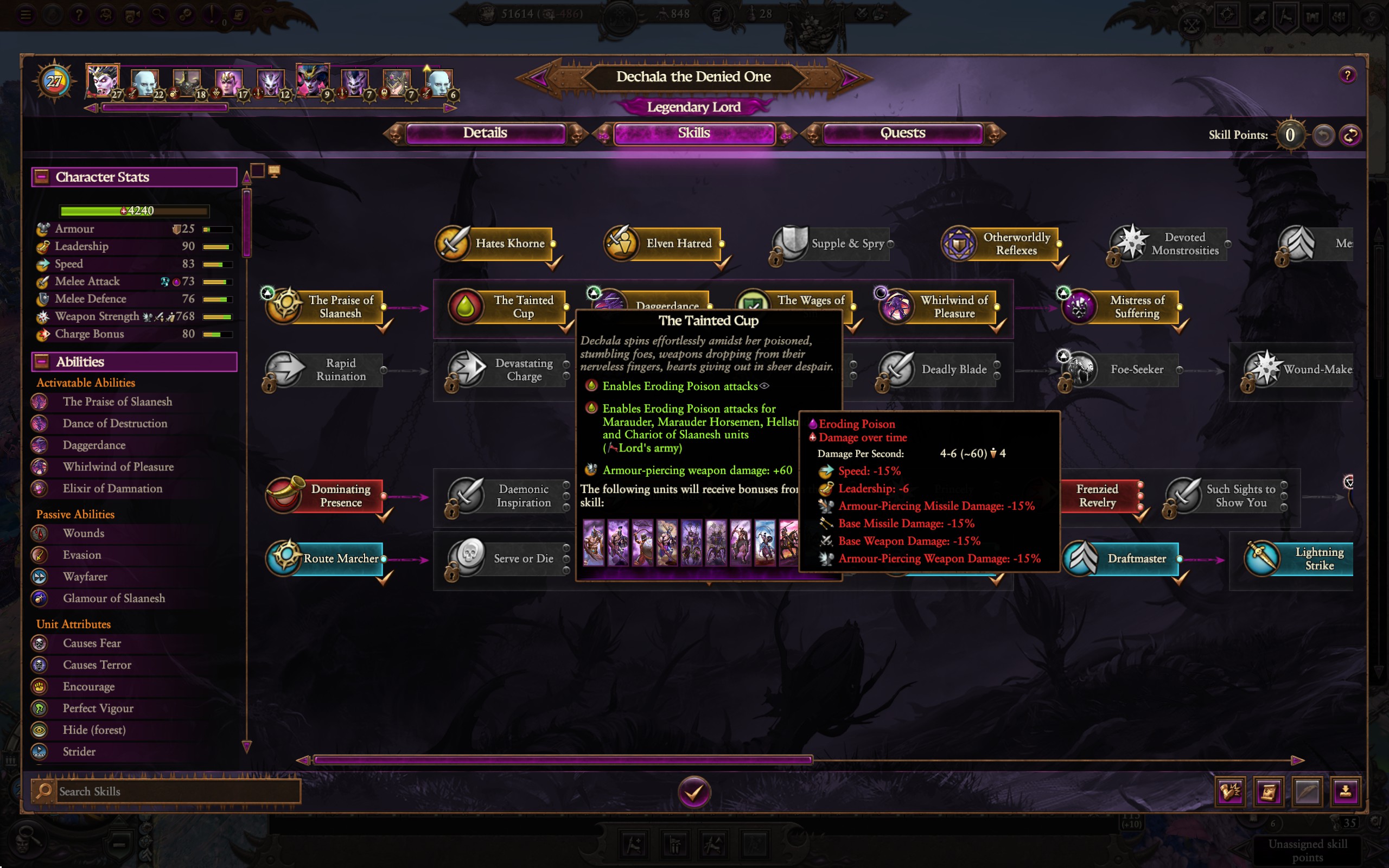 >>549718282I have.. I played her for a bit.. it still doesn't make sense.You are running basic bitch marauders and that poison doesn't deal any damage, I've seen it do absolutely 0.Those Marauders have to overcome 130 fkn armor, 49MD and 10k life with the Chosen with dual weapons while taking enormous damage that never misses cause 66MA... and the wrathmongers are even worse.Even with that useless damage reduction from the poison, both still hit for like 70-80 weapon strength.In what world does a Marauder tank that assault while already weakened by high elves? And ofc tired af after such a long battle.