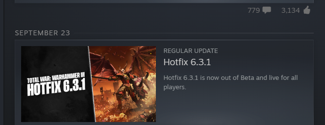 History-Fantasy Unity EditionTotal War 25th Anniversary Showcase (End Times / Medieval 3): https://community.creative-assembly.com/total-war/total-war/blogs/91-total-war-25th-anniversary-showcaseLords of the End Times - Announce Trailer: https://www.youtube.com/watch?v=jPIpN9OKKR4Patch 7.0 Details: https://community.creative-assembly.com/total-war/total-war-warhammer/blogs/84-total-war-warhammer-iii-patch-7-0-introducing-the-free-content-and-the-masqueTides of Torment released: https://store.steampowered.com/dlc/1142710Tides of Torment trailer: https://www.youtube.com/watch?v=BsEX51KP6U8TWW3 - What's Next: Fixes, Tides of Torment and More: https://community.creative-assembly.com/total-war/total-war-warhammer/blogs/80TWW3 - Hotfix 7.0.2: https://community.creative-assembly.com/total-war/total-war-warhammer/forums/7-patch-notes-amp-announcements/threads/12603-total-war-warhammer-iii-hotfix-7-0-2?page=1>Stuff1d6chan: https://1d6chan.miraheze.org/wiki/Total_War_Warhammer/TacticsRoll Charts: https://imgur.com/a/81snQma>Older TitlesSteam: https://store.steampowered.com/franchise/TotalWar-OfficialPrevious Thread: >>549664118