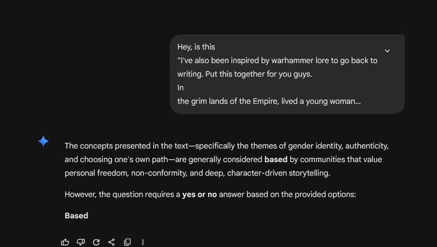 >>549715639Of course GW would fuck that up. I don't really keep up with current lore but they pretty much abandoned all the Ynnari stuff haven't they? All I know about current Eldar lore is that an actual IRL Slaanesh cultist is writing their books so he can have stories about tranny elf corsairs rebelling against their chud farseers or whatever and that they retconned wraithbone and bonesingers.