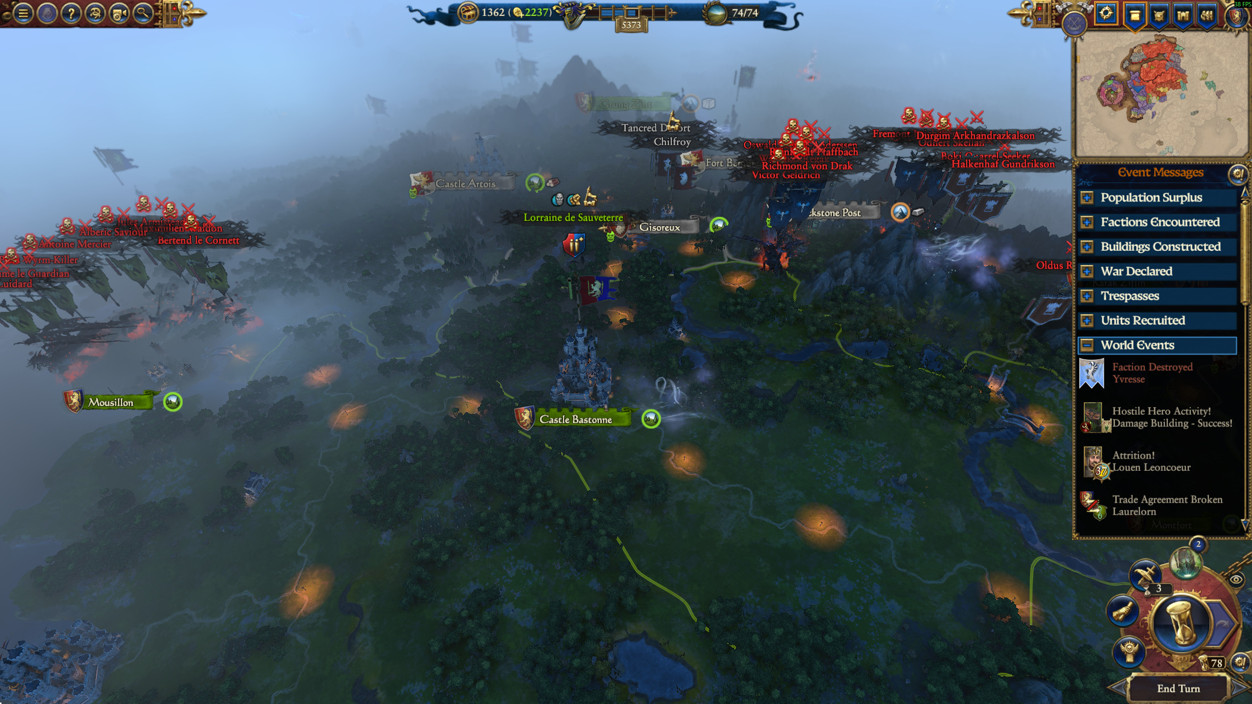 >>549784450Nah, I chose Azhag for my first target. He was building up an army at the edge of Fort Jakova and had no active war, so I figured I had to get rid of him now. Clan Moulder is still at war, but now Kostalyn is sitting around scratching his balls doing nothing with his stacks while Thot is out for blood. Now, I'm stuck in limbo where I can't take out either with my forces split. Unless I can pull a peace treaty out of my ass, it's pretty much over now that Drycha is coming in with the ligneous steel chair.