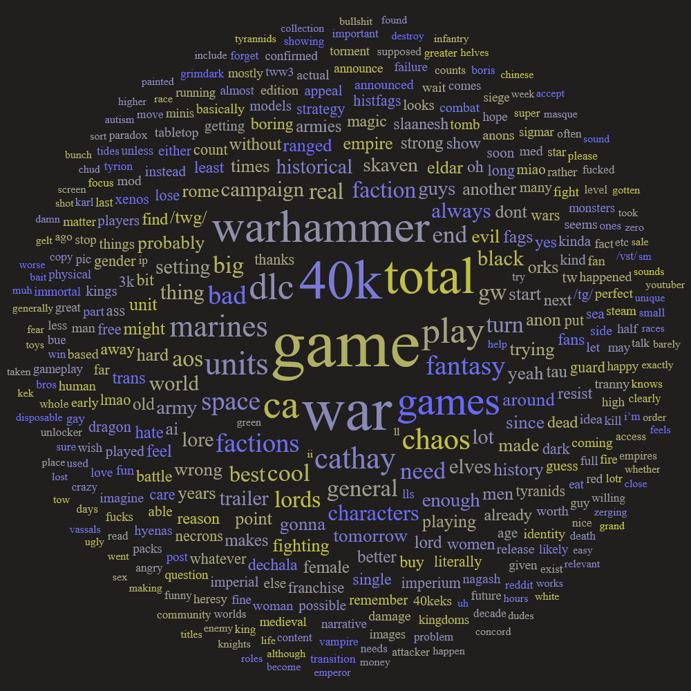 >>549730351I unironically, no shitposting or meming added, want it to be AoS.Say what you want about schizo discworlds, but the AoS modelling team has actual talent and it's units would be fun to use.