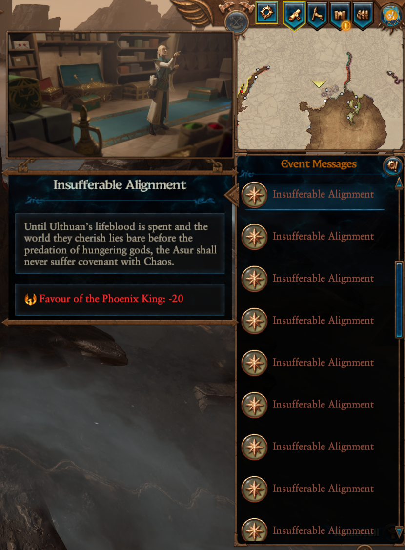 >>549771114>I dont want to fight a long war with grimgorI'm currently playing a Reikland (Karl Franz specifically) campaign in Warhammer 2. Grimgor has over 100 settlements and is at strength rank 1. Some of his settlements are in the southern edges of the Empire, and places that I need to get the campaign victory, like Nuln and Pfeildorf.I'm amazed that he hasn't declared war on me yet, or that one of my allies hasn't done something to drag me into a war with him. Hopefully no war with him happens until I can stomp Naggarond. Grimgor has so many armies all over the place that I just know that when the war happens, even if I declare war on him first, there's gonna be at least one of his armies hiding in my lands ready to fucking take some of my undefended settlements.