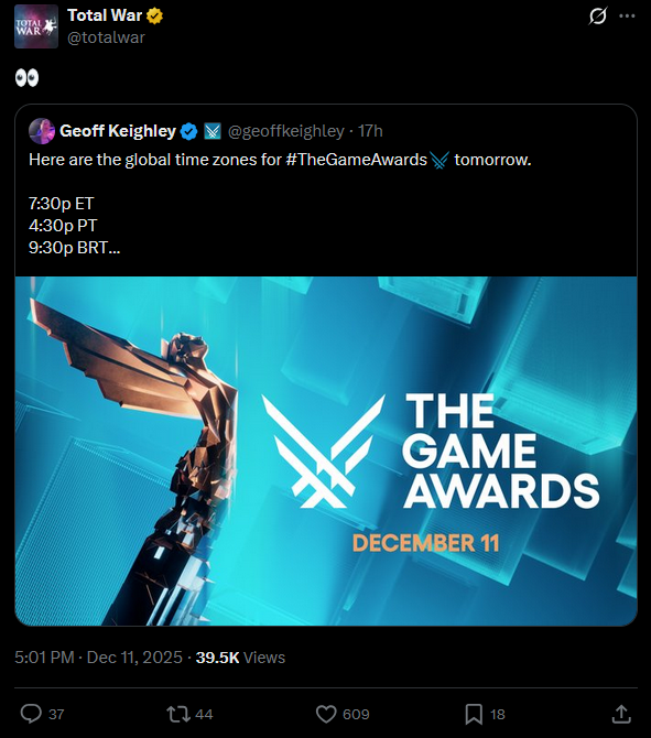>game awards is at 1 am yurp hours i'm not staying up for a potential trailer of 40k