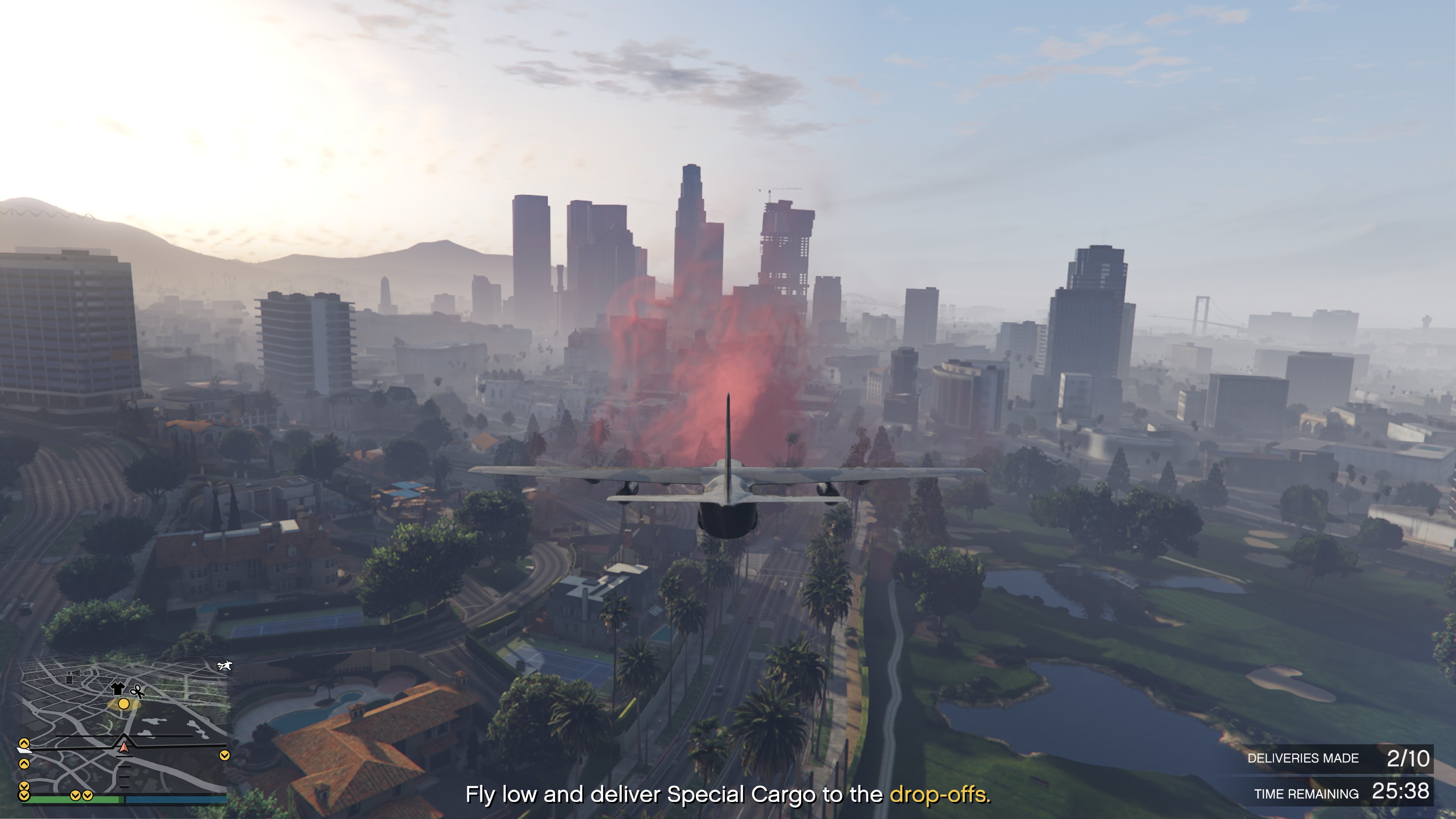 it's a good thing i'm flying this plane low so the cops wont notice me dropping these barely legal goods into LS.