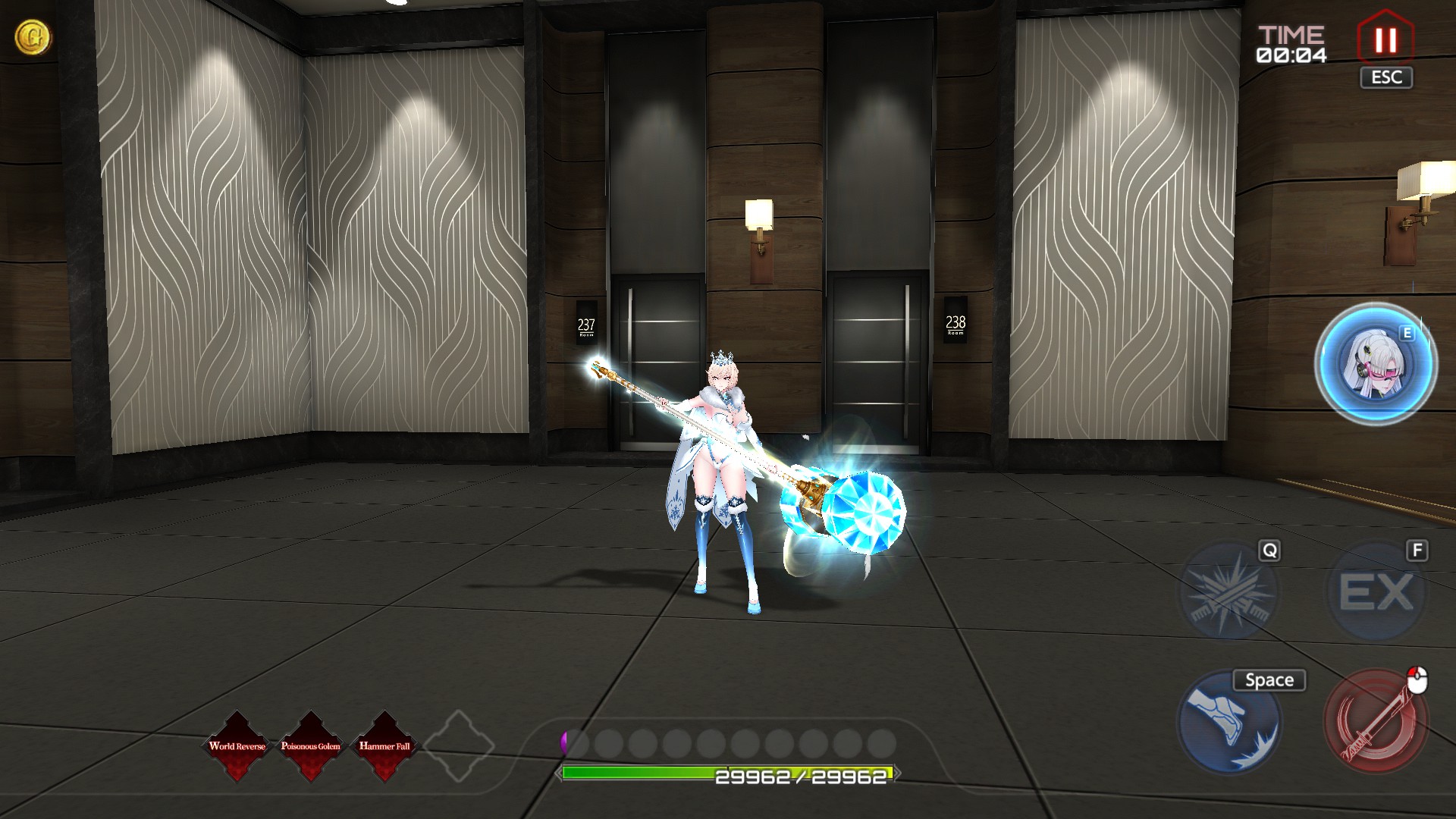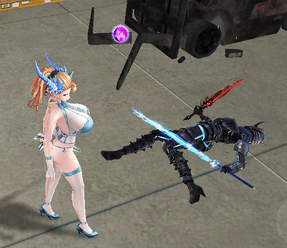 >she strikes an enemy as soon as the group spawns and they all immediately turn and attack a destructible machine near them