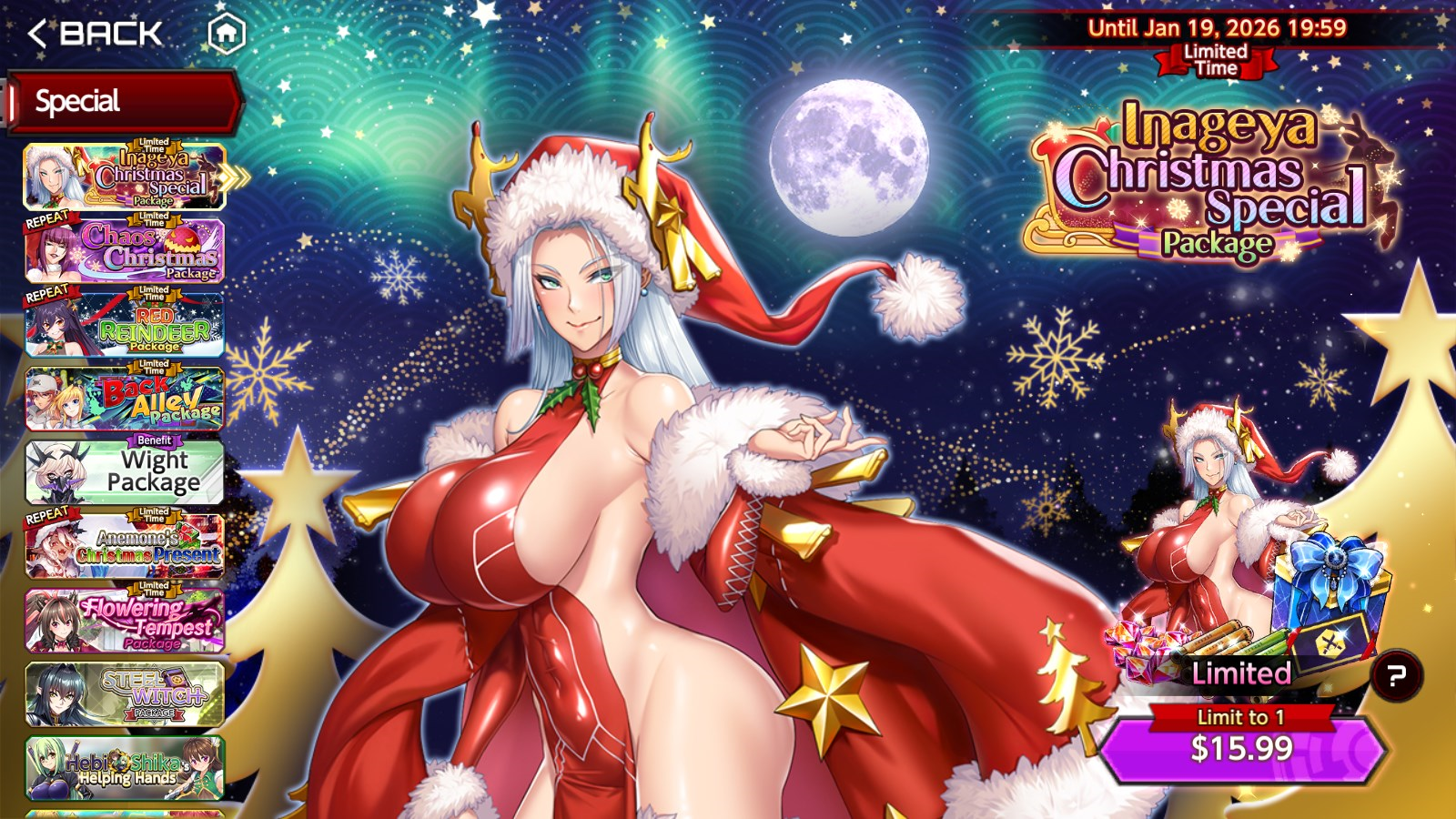 Weeklies have a christmas supporter voucher, christmas costume voucher, and 50 gems