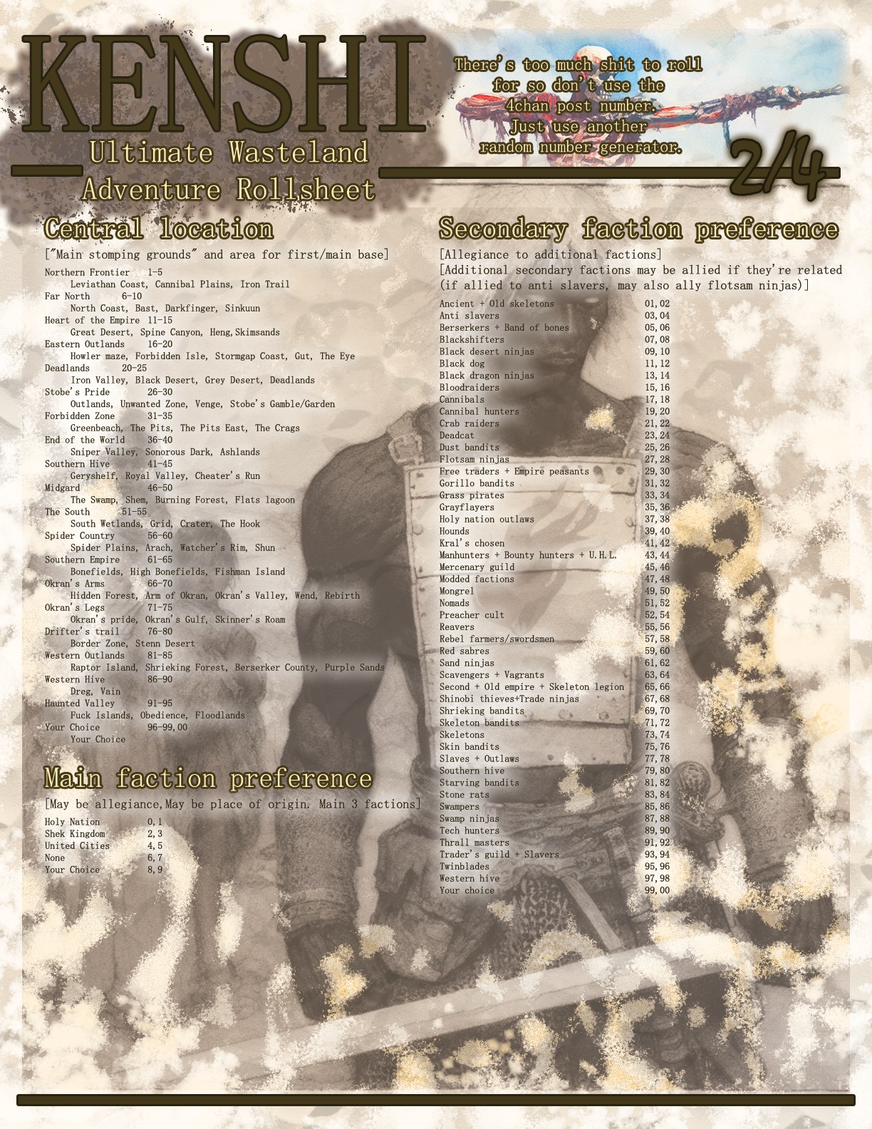 >>550129393That's sort of what's in play. When I proposed the Fishman Invasion it came with a kind of conditional acceptance that the southern coastlines were going to be increasingly inundated with waterborne mutants. The empire, even in an "empowered" scenario is facing down (and the first to be forced to do so) a tide that is powerful & persistent enough to break their defenses. Without a coalition forming to stem the tide it would be difficult to prevent penetration up to (and beyond) the swamplands interior.The wildcard in play is the instructive override which can occur to the Crab Raiders, i.e., the Fishmen taking their main settlement in Vanilla. Since an invasion along the southern shores technically includes for the southeastern expanse of Greenbeach it basically obligates them into the initial reaction-response for when the first wave of the invasion arrives in earnest. So, how would they fare? Probably better than the imperial legions who spend more time avoiding the local wildlife and beating up poor people for funsies. The southern legions enjoy a semi-hegemonic status over the marshes and shores because the only potential rival, the Southern Hive, refuses to aggress upon their territories. What we have then is a question of whether the Crab Raiders come to blows with the known expansionist Southern Hive. That is to say, there's an obvious viability to collaboration between the Crabbers and imperials if the circumstances grew dire enough. The Hive wouldn't entertain such collaborative interests - meaning the only way to know if the Crabbers can help is removing the threats to their regional domination. A scattered southeast makes stopping the waves from pouring over the region almost futile.