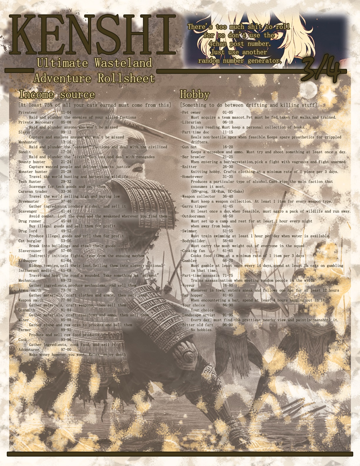 >>550534524Sure>Aquire currencyFound a company and ply your trade. It could be mining or smithing or food production or moonshining or hash or whatever. Money is power and power is respected. Make the workers work, they love it. In my hiver run I'm shifting from a copper mining company to a weapons manufacturer.>Catch em allEvery hive exile is yours now, go get them. Every named follower, every generic follower, every slave (that will actually follow), yours, as many as you can feed. These are your people now, build your hive up.>The Holy NationUp to you, but I wouldn't kill them. Sure you're illegal there and they'll enslave you, but they're holding back the fogmen. Fogmen seem like a hiver's nightmare made real, keep their territory to a minimum. It's a good reason not to kill the southern queen too. Speaking of>Kill KingKing is clearly not a Hiver and his death will not spread the fog. >Bounties/MeitousGeneric, but it's prestige and power. >Become a UC NobleHivers are low status in the UC, and that won't do. Make them change their minds, become a real merchant prince, make Tengu regret insulting you and yours. Grabbing those bounties will help.The big objectives are kill King and become king, or at least prince.