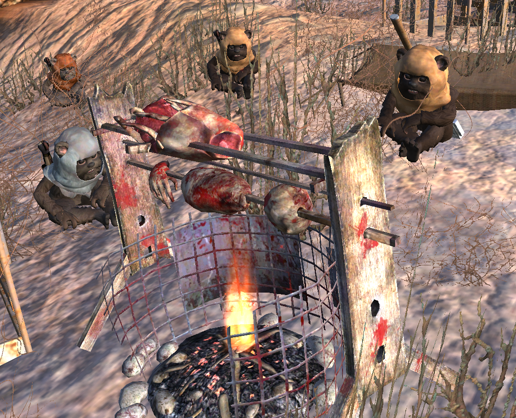 >>549912761The whole northern part of Kenshi seems kind of lackluster.I'm currently playing a playtrough that focuses on those areas and have downloaded a couple of miniscule mods to make it better ; Like a freed Deadcat when you kill the grand wizard, livelier Fog Islands once you kill a Fog King (like trade caravans and even Paladin groups walking around) , an actual Berseker Outpost in the fucking Berserker country (!!!)I'm amazed that there isn't a person at the Bastion (the Cannibal Hunters' HQ) to whom I can turn in the Cannibal Chief bounties.Dreg also needs like some roaming bandit population that terrorises the few fishing villages, since the fisherman do mane a mention of it.Shame any mods that do change these things add their own OC gangs and city overrides.