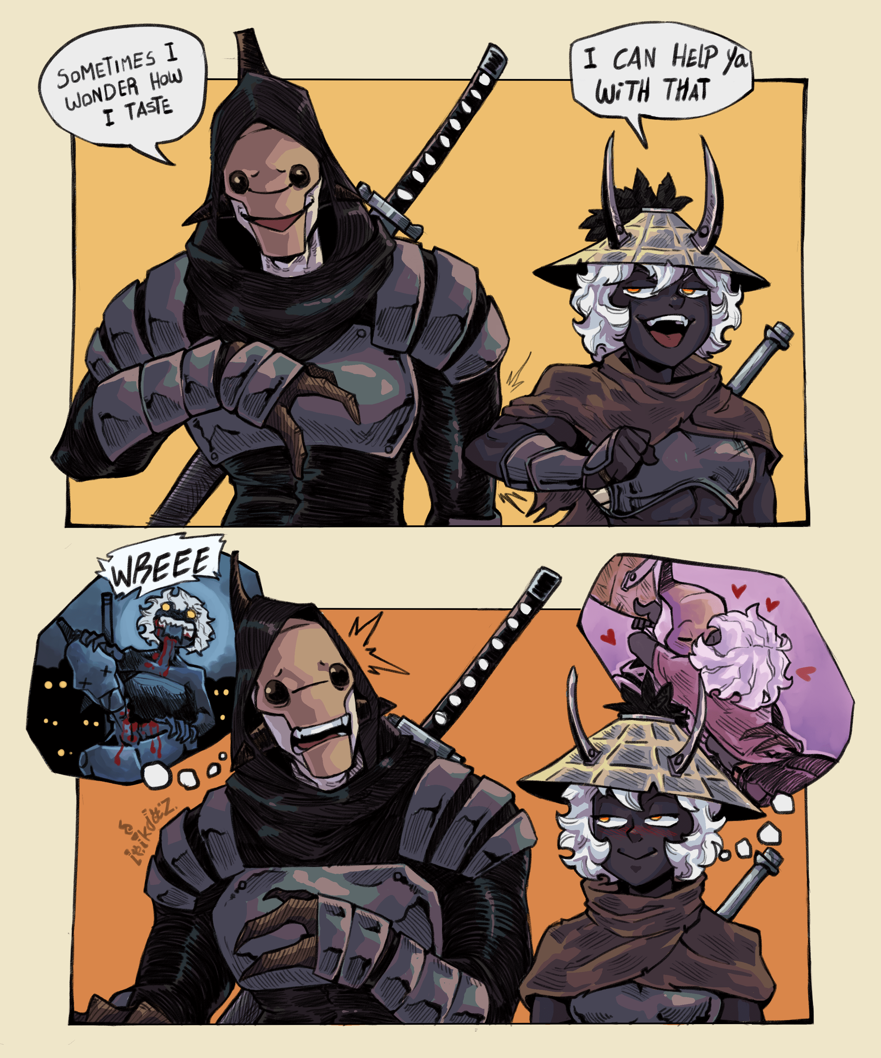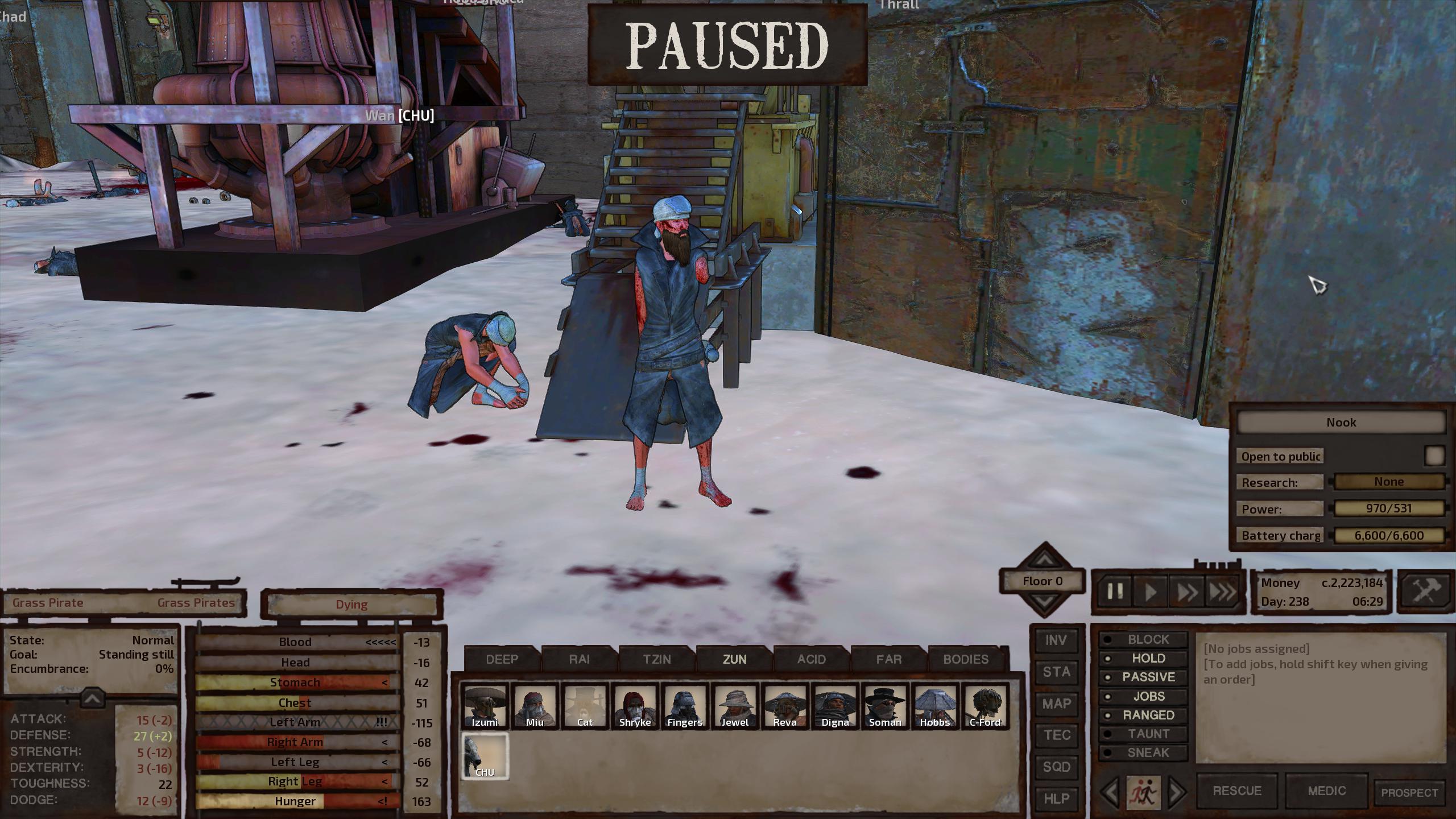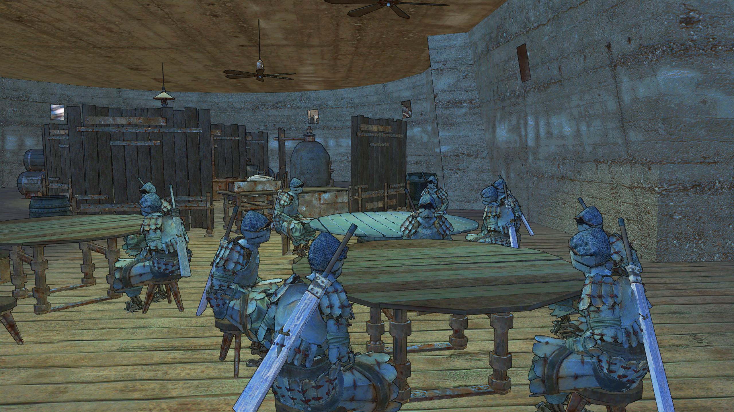 >Turned around for a sec>Luquin, heavily armored and entrusted with the Nodachi Meitou, suddenly in shackles outside of the Reavers HQ. What the fuck happened. He was wounded sure, but I could have sworn my guys carried him into the rest building deep inside my base. Stupid idiot must've walked out and gotten himself caught. Fortunately the reaver that caught him was severely wounded himself and got himself knocked out by a fucking reaver slave, giving Luquin the chance to recover the sword and his boots and escape. Green's in a similar boat though so my ninjas are on the way to pick him up.