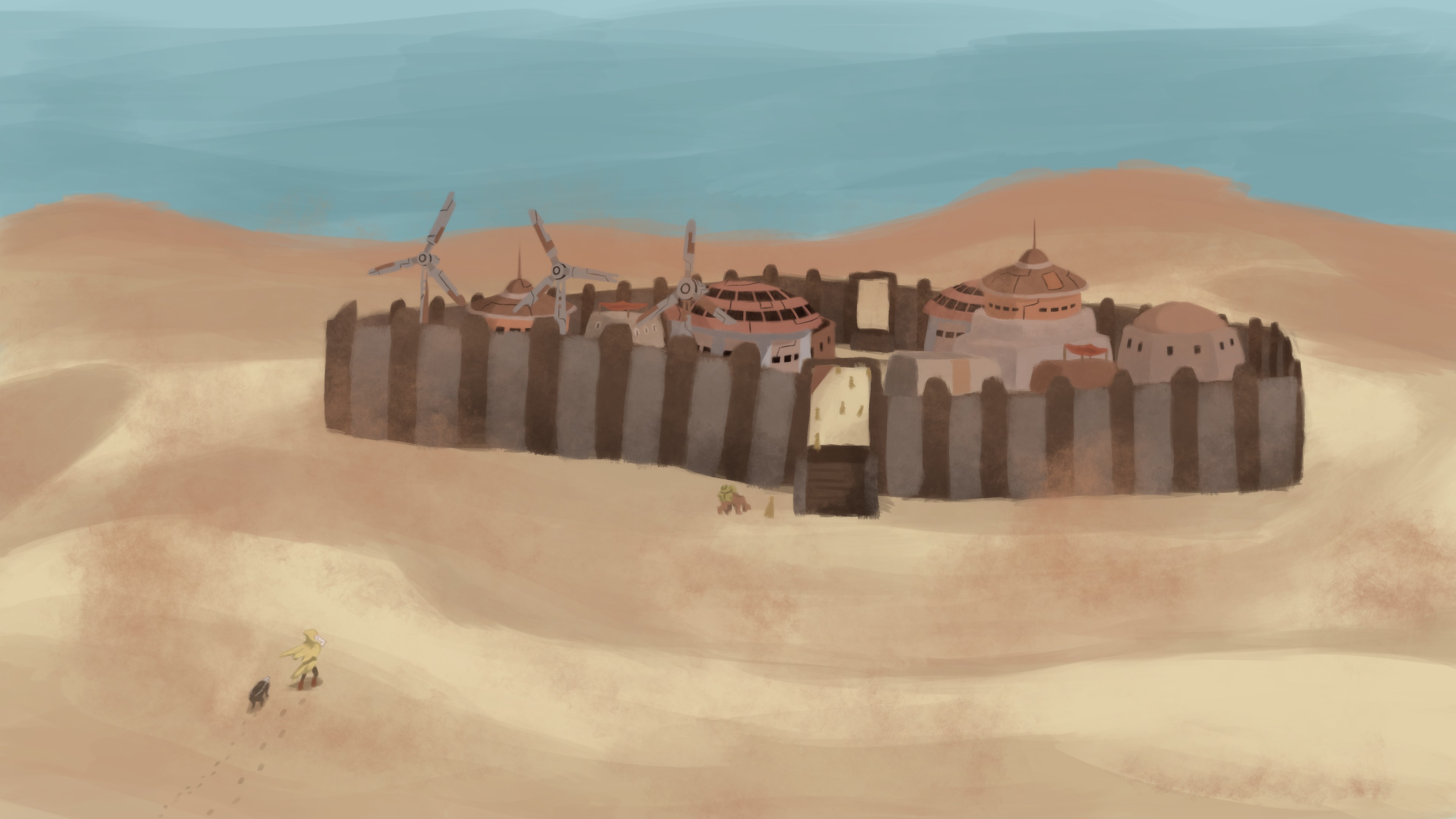 >>549936157>>549692137 I dragged my whole team up to Bad Teeth, and everything that looked promising on the overworld map was just too far away for the idea to be at all doable. But then I looked north of Bad Teeth, and the field had copper and iron. Also, the field has this rocky landscape that kinda makes me think that I might be able to use some minimal walls and just block off the whole field. I would have a camp, but the only way in and out would be for an aggressor to path all the way through Bad Teeth. I doubt I'm the first person to look at that place and think of this. Assuming the city guards are strong enough to repel invaders, they would be perfect free security. Of course I would regret everything if it turns out they couldn't do the job and the city got overthrown. Then later on I went on a trip to Okran's Shield. Passed by a broken farm that had been overrun by hungry bandits, so i killed the leader, so hopefully something different will populate it. Then half way between that spot and Okran's Shield, I saw copper nodes. The no-base idea I originally had for Bad Teeth, might have been feasible if I held out and saw all this near Okran's Shield. They would have to path through a bit of acid rain, but still, that can be overcome with the right clothing. Too late now I guess.