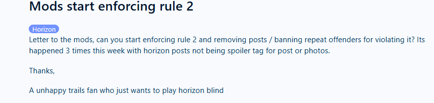 Will report anyone who posts horizon spoilers in this thread