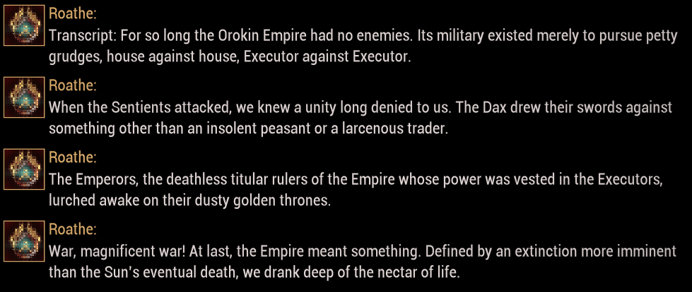 >>549966962Might as well have been a string of victories to them. The Sentients indirectly caused a ton of chaos in the Orokin Empire. The description Roathe gave implies the reason we heard so little of them was because they were bored out of their nearly immortal lives and left everything to the Seven.Now suddenly they have an enemy to war against, their containment planets became breeding grounds for the infestation and after all that the Tenno rebelled. They might have died happy between all the fun and finally being freed from eternal life.>>549967036Roathe explains the Emperors were above The Seven, but they ''vested all their power'' in the Seven while dusting in their thrones.Only at the risk of death that they finally got the joy of life.