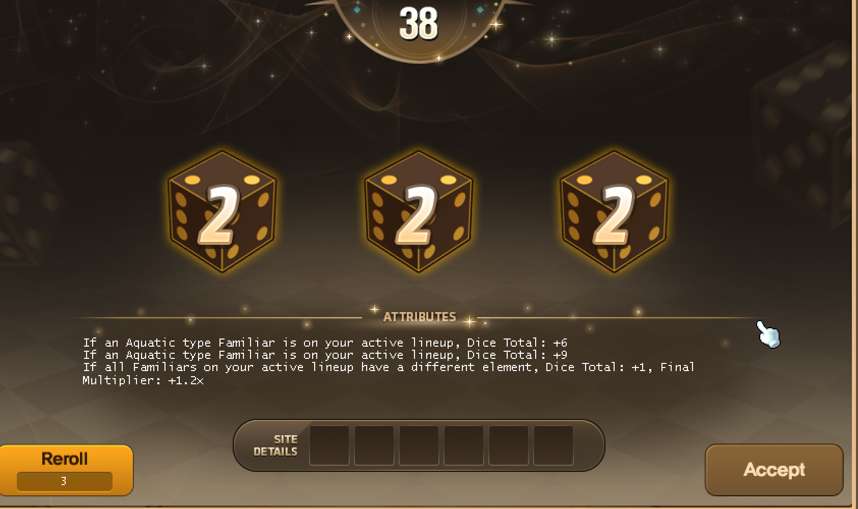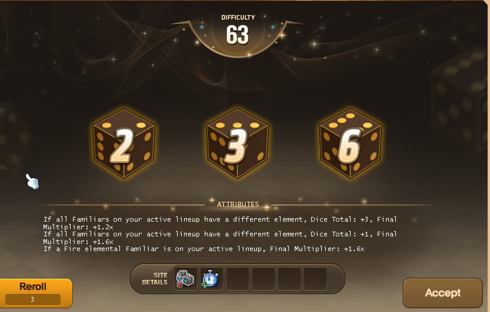>>550861164that is definitely something to consider, it's a lot of work to try and get good familiars especially when the type and element of familiars didn't matter until now so no one has documented where each of the combos can be farmedafter doing a legendary expedition i can say that epic familiars are fine as long as your potentials are relevant and you match the expedition requirementsthis expedition asked for holy/devils, going in with 3 devils gave me a free +15 to die rolls, combined with the default 3x multiplier i had from potentials the only roll i failed was the last (197, rolled 192) due to rolling odd on the last die and not proccing the luck based multiplieri was not offered the chance to get a bag above purple, next time i get a legendary expedition i want to try matching the element to see if there's any difference or if it just affects the bonus skill at the startas far as ap goes level 5 on each familiar is important so you don't risk burning out on round 3, if you swipe for breakthroughs a full team of level 7 familiars shouldn't need to ever heal (this also means needing unique familiars which is much more time consuming/expensive especially since there's no way to reroll frontier potentials at the moment)