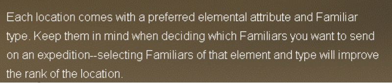 >>550905648Yes, I'm not saying it isn't major what I'm saying is that there is no point to matching the element or type past the first familiar.For example if the expedition requires fire/undead, you can run something like this>fire/human unique>water/aquatic>holy/machineAnd you'll still get the same bonus skill that you would have gotten if you ran 3 fire/human unique familiars. I mistook the number of types for elements so you only need 7 high tier familiars for each element to maximize your expeditions, not 9.