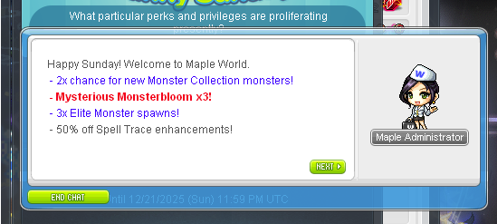 Patiently waiting for the two big updates! editionAscent skills literally tomorrow notes (don't read this until the 16th (unless your class is not on the whitelist in which case, im sorry)): https://www.nexon.com/maplestory/news/update/32522/updated-11-11-v-264-every-little-thing-every-precious-thing-patch-notesBlack Friday is over, back to white tuesdays: https://www.nexon.com/maplestory/news/sale/33721/cash-shop-update-for-december-10Crown showcase tonight: https://orangemushroom.net/2025/11/23/kms-ver-1-2-409-maplestory-x-one-punch-man/Grandis library? Like, Ristonia? They probably have a library there: https://grandislibrary.com/EVERYONE WHO PLAYS THE OFFICIAL SERVERS IS SPREAD OUT!! POST YOUR IGN AND GET INVITED TO THE CRVWN SHOWCASE WATCH SHARTY! THERE WILL BE SNACKS, BRING YOUR OWN PAJAMAS AND BLANKIE ITS GONNA GET LATE FOLX (LIKE WOW WHY DO THESE K-BUDDIES HAVE TO HAVE THEIR SHOWCASE SO LATE?? 2AM IS A LITTLE MUCH GUYS EVEN IF ITS NOT A SCHOOL NIGHT)SCANIA - Buddy DoubleOctave and NisunobiKRONOS - Apply to ARCHIVED!! Also, whisper Felix!HYPERION - Apply to Comfy and 2kowai!AURORA - Buddy Sipr to complete your 1000 mobs challenge world dailySOLIS - Apply to BuyingTrack to get excited! for something! maybe!Heroic CW - Apply to Kinoplex, it's Christmas movie time! Like Die Hard!PRIVATE SERVERS - Maplestory classic hits shelves in April 2026! Relax! It won't be here for a long time! Go play Royals or Legends or Maplesaga or Artale instead! They're the same thing.Previous showcase waiting room: >>548679891