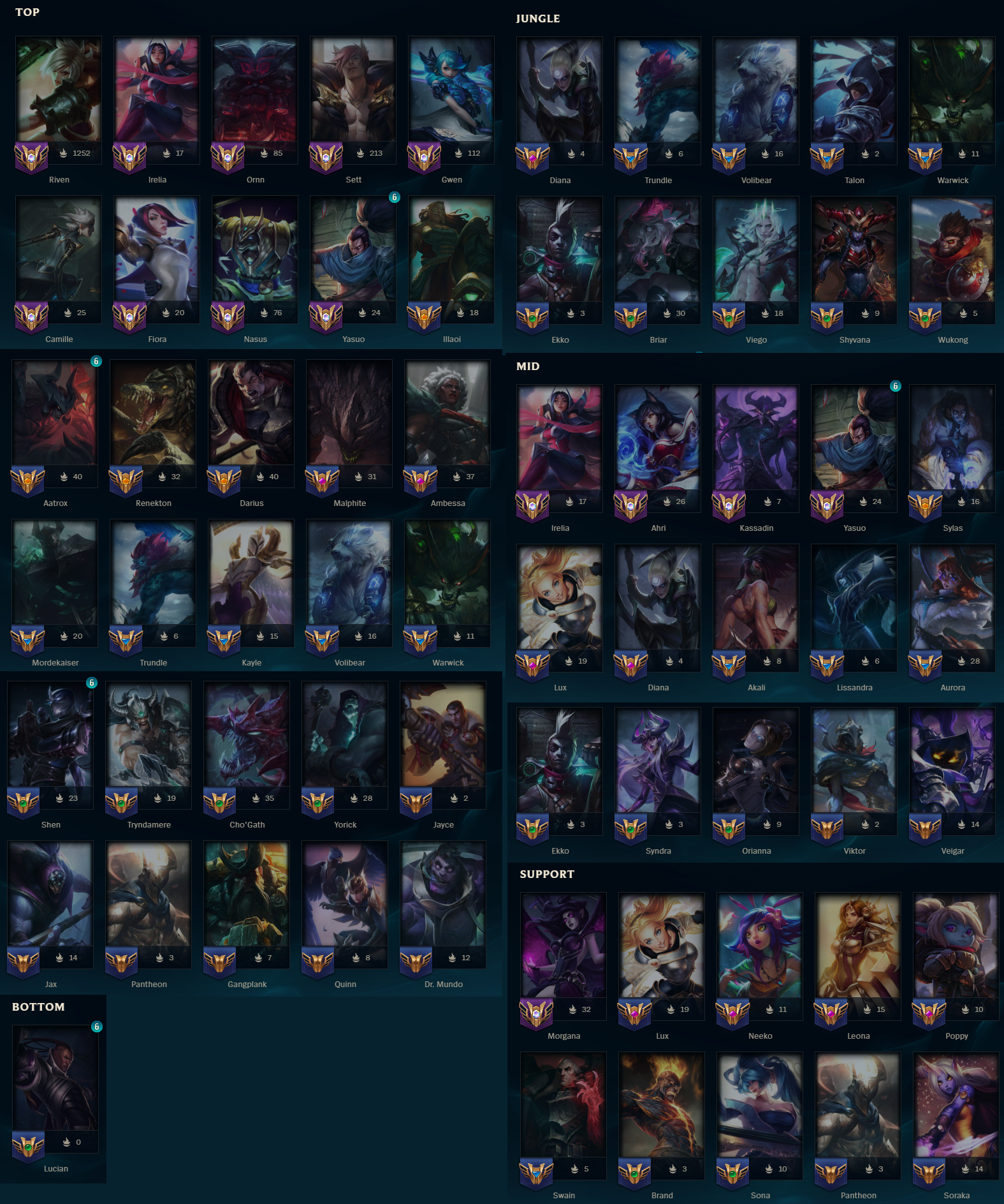 >>550000618The stalking, talking shit about somones champ/roles/elo/duo, etc has left people to become more antisocial.People will come back when the rank resets.