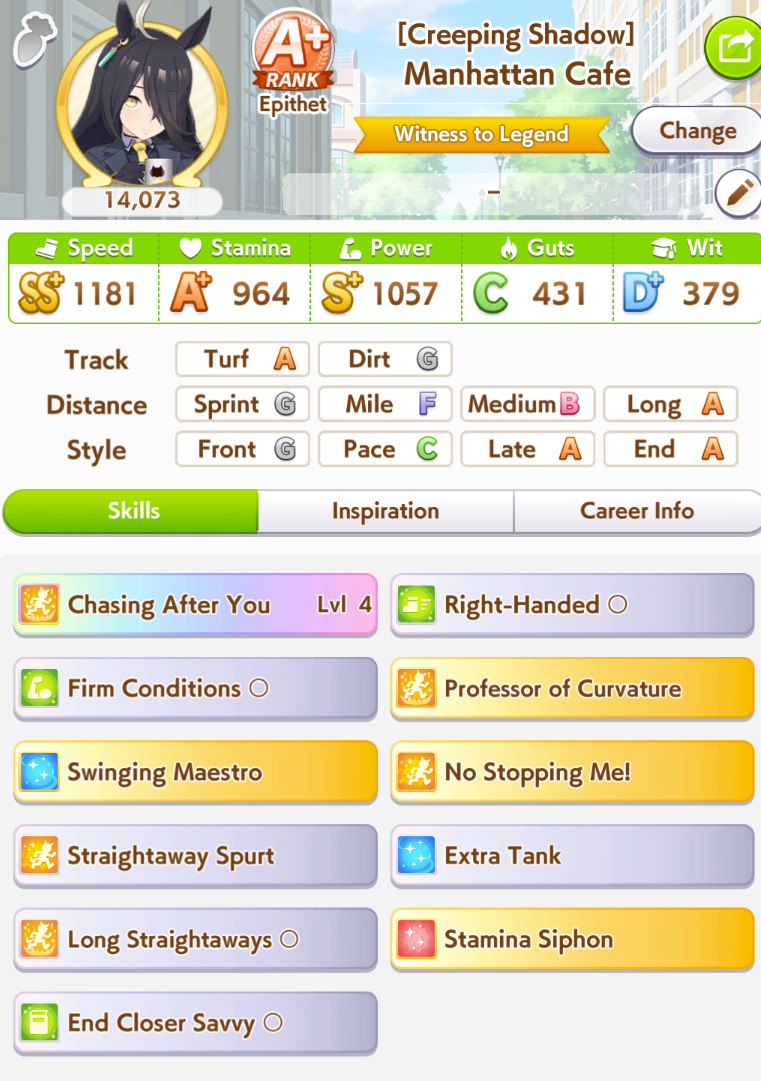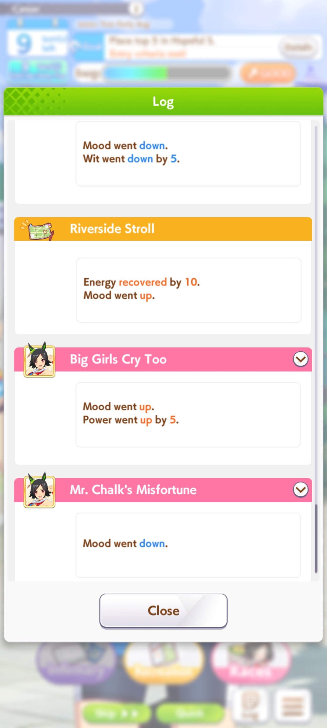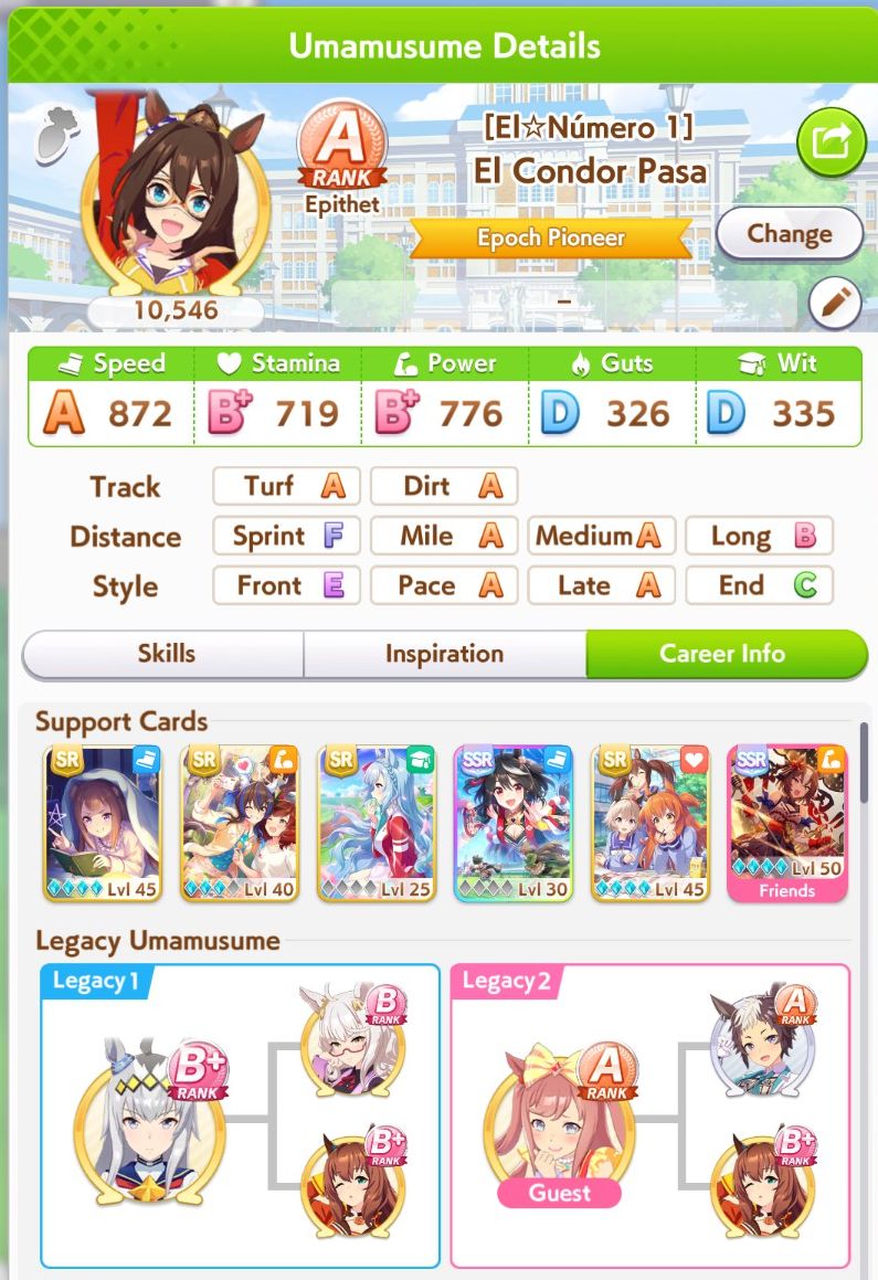 Is it just me or has an update in the last week made URA El parent runs significantly harder? I keep having to burn all my clocks on the Arima Kinen even with 800/600/700 spd/sta/pwr and getting lucky with BOFA on top of Calm and Collected when before I just cruised through everything. I can't fix the Long B thanks to needing a Dirt spark for future Dirt Biwa for Aquarius Cup and adding Long A would dilute the odds even more than they already are to get what I need.