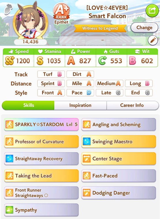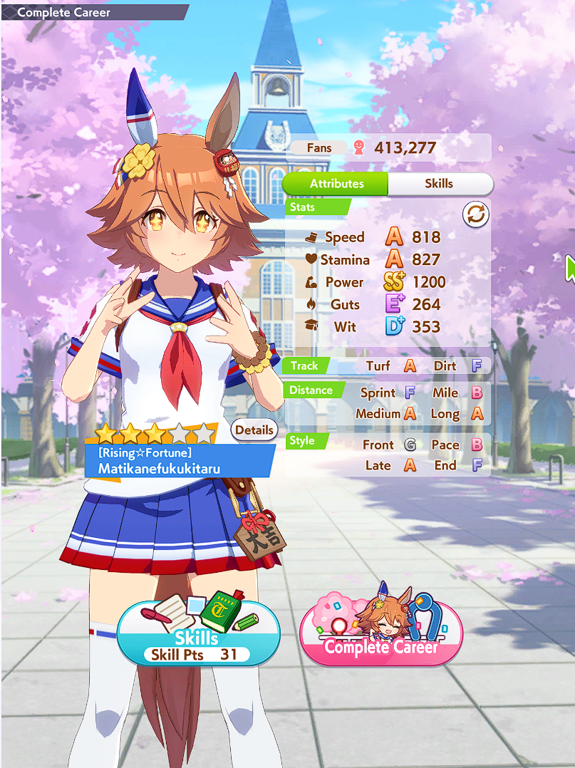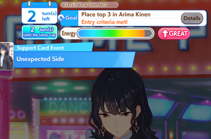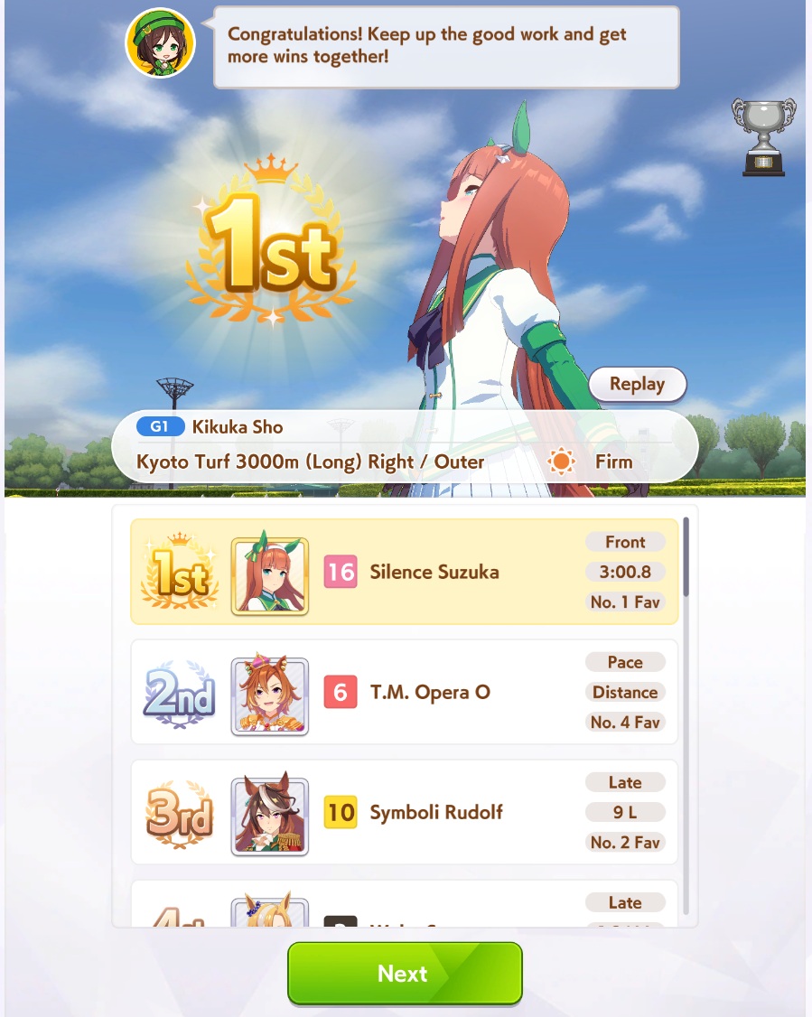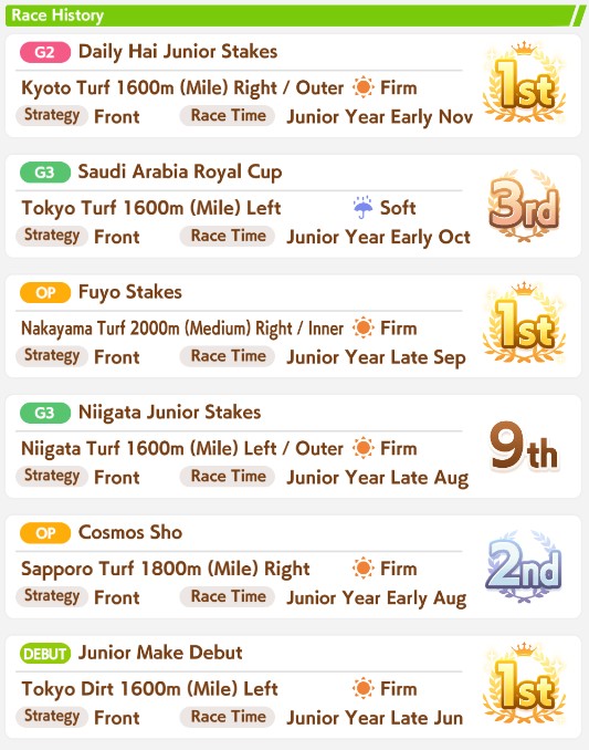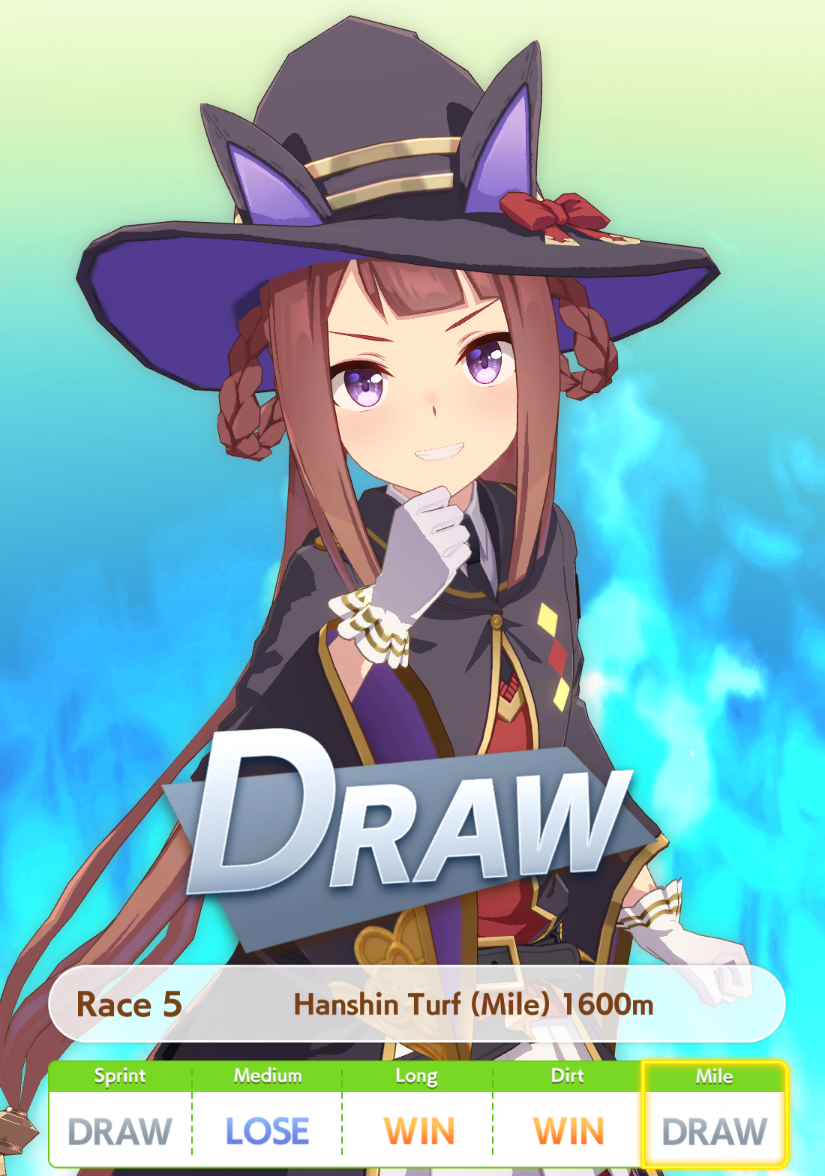 >>550031038NHK Mile Cup is significantly harder in her career. I'm only able to get first maybe 1 out of 4 runs.