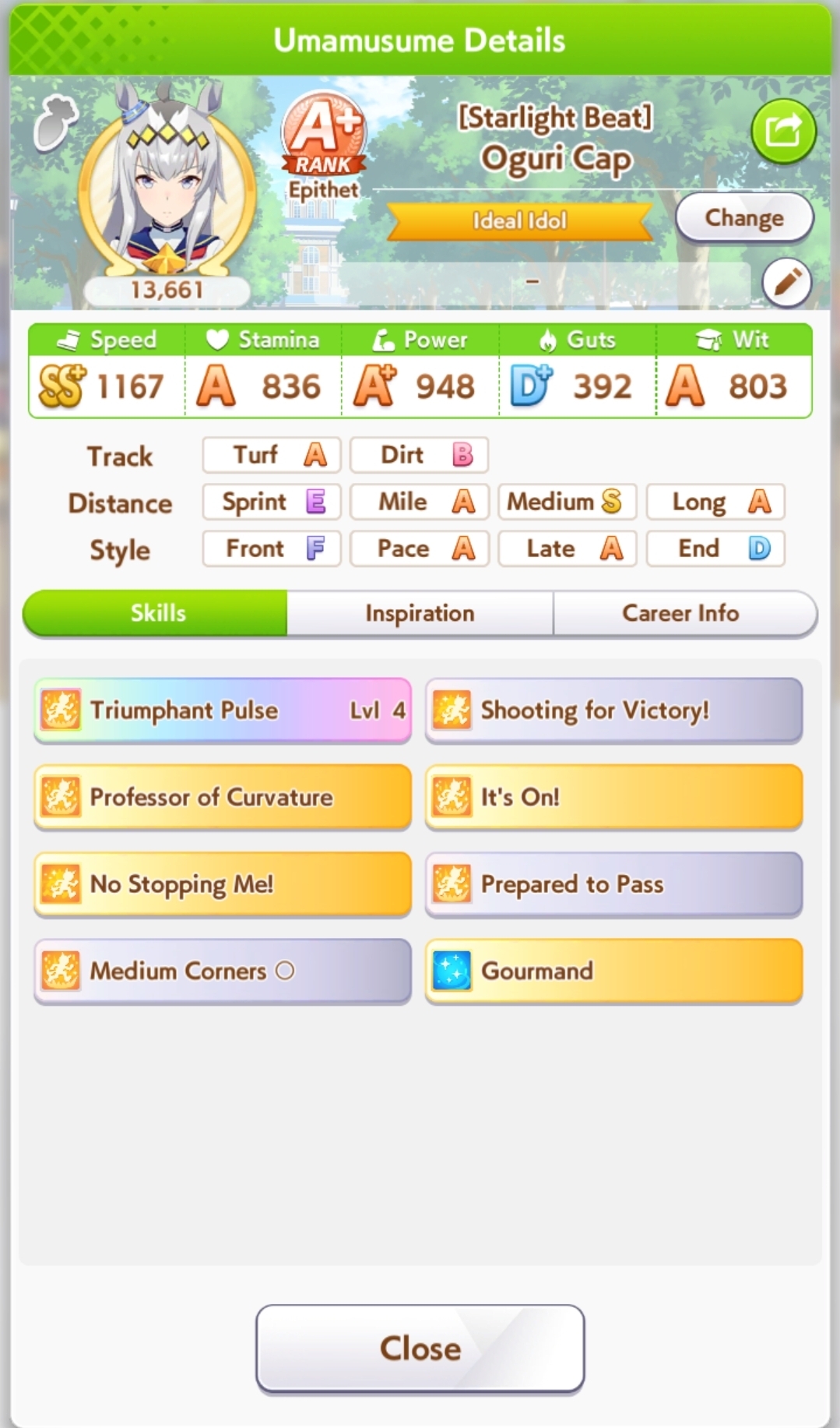 >>550013543I can't wait to transcend to piggyhood bros... I have all those cards except kitasan and I can't ever break the S barrier. Kitasan literally the only thing that's blocking me from getting S umas