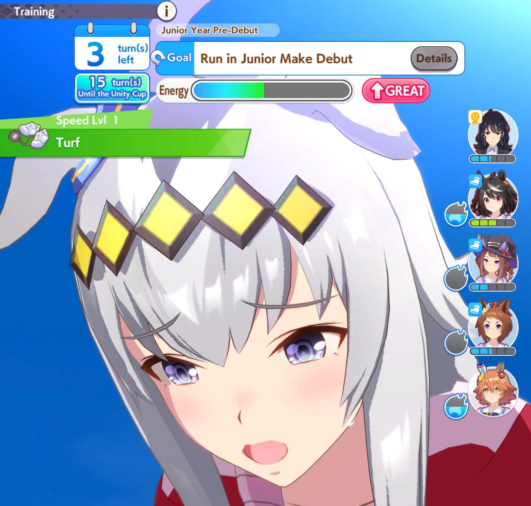 >charming pre-debut>ridiculously good trainings>game decides to completely fucking brick your run