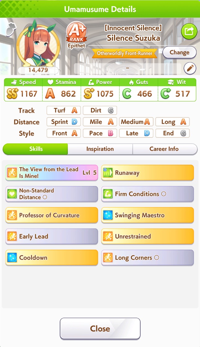 >long S>garbage speed rainbowsevery fucking time without fail I hate this game can they just up the inheritance rate on aptitudes this its not fun