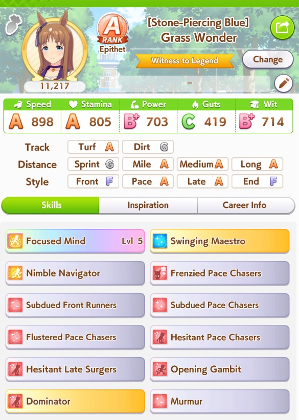 >>550028964no, just use umalator800stam no skills is enough, or 700+1goldyou could say that's the min requirements