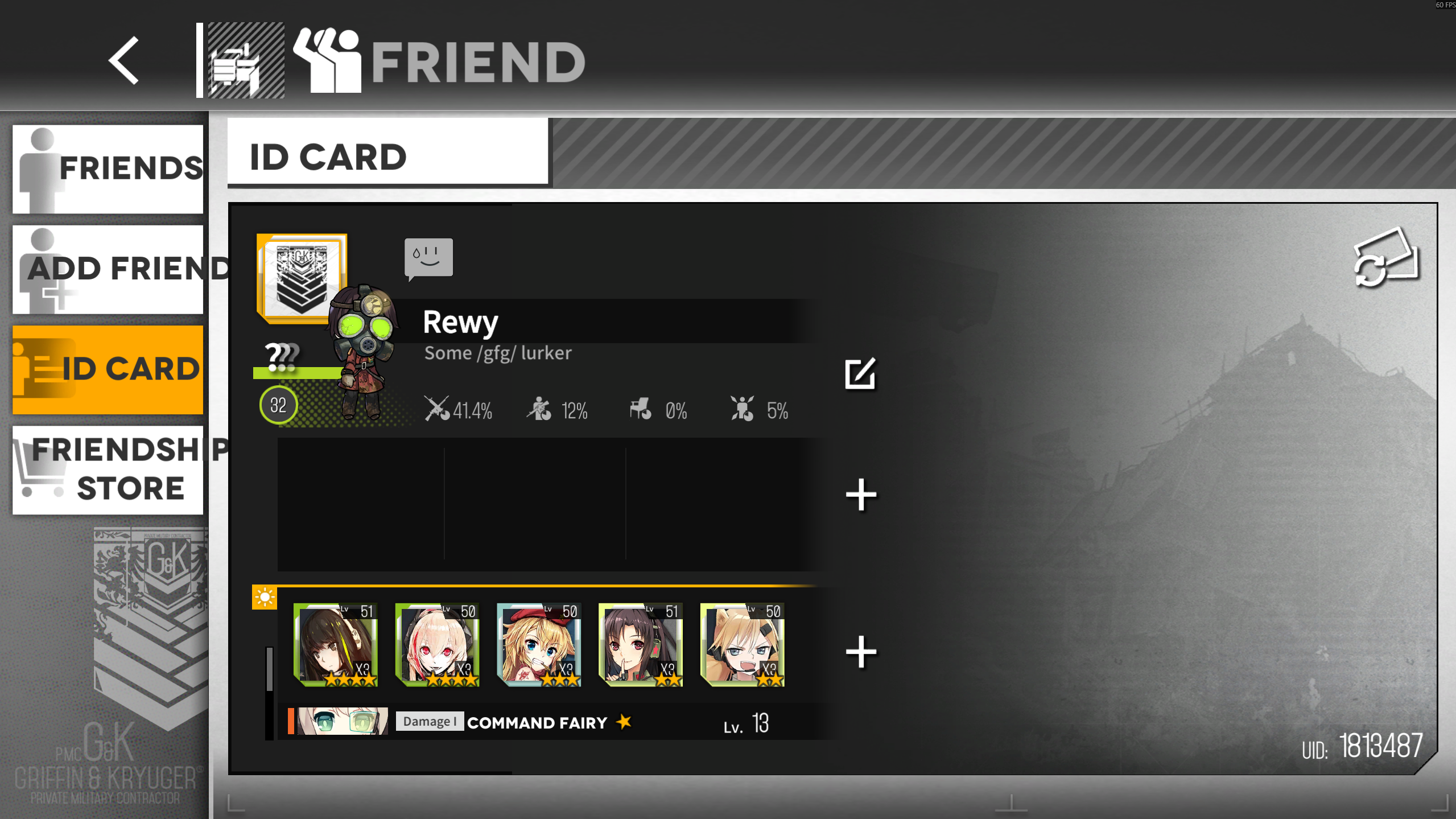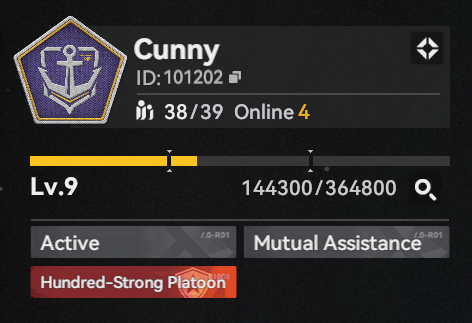 >>550012819Once again we're looking for fresh dorky anons!>RegionHaoplay Global>Platoon NameCunny>Casual/ActiveJust do your hits, no need to 3-hit in gunsmoke but you're welcome to do so. There are support Klukais, Springfields, Qiuhuas and more all at V6 to make your experience a bit less painful.>Miscellaneous InfoWe finally reached the level 9-1 buff.Have some identification in your profile or message danchou/deputy for an invitation:Platoon ID - 101202Danchou - 10341Deputy - 441744