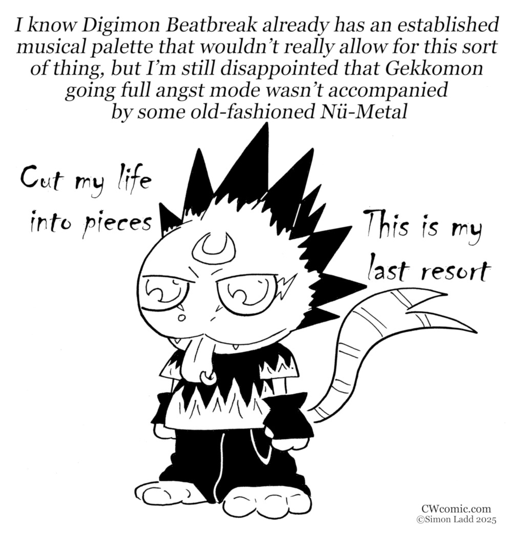 Crying Gekkomon EditionPrevious: >>549626914>NEW TO THE DIGIMON FRANCHISE? HERE'S A STARTER GUIDEhttps://imgur.com/a/5uGdx0l>Kenji Watanabe's wife has passed awayhttps://x.com/jinke_jinke/status/1996530074162749590GAME NEWS>Time Stranger is out now!>Alternate Dimension DLC Pack 1: Available Now!>DragonRod's Digital Tamer Reborn 2https://dragonrod342.itch.io/digital-tamers-2>Digital Monster: Net Driverhttps://kuhamaven.itch.io/dm-net-driver>Other recent games:Digimon Story Time Stranger, Digimon Survive, Digimon World Next Order (PC & Switch Port)>Upcoming games:Digimon Alysion>Lost Evolution translation patch finally releasedhttps://pastebin.com/ddh1C8LMANIME NEWS>Digimon Beatbreak official websitehttps://www.toei-anim.co.jp/tv/digimon_beatbreak/>EPISODE 10https://nyaa.si/view/2051077LIBERATOR NEWS>Comic Chapters & Web Novel Chaptershttps://digimoncard.com/digimon_liberator/en/comic/https://digimoncard.com/digimon_liberator/en/novel/>Official websitehttps://digimoncard.com/digimon_liberator/>Official JP themehttps://www.youtube.com/watch?v=YkmPTtp9D_o>Liberator synopsis and character detailshttps://withthewill.net/threads/30615https://digimoncard.com/digimon_liberator/en/character/>Liberator initial announcementhttps://withthewill.net/threads/30489CARD GAME NEWS>Current /tg/ /dcg/ thread>>>/tg/97149329MANGA NEWS>Digimon Dreamers online distribution updatehttps://withthewill.net/threads/30849>EN Reference Bookhttps://digimon.net/reference_en/>Line Buildershttps://digimon-lines.com/buildhttps://furudbat.github.io/digimon-partner-kit/[RESOURCES PASTEBIN [UPDATED WITH CS MOD DETAILS!]https://pastebin.com/LuTfCHDs
