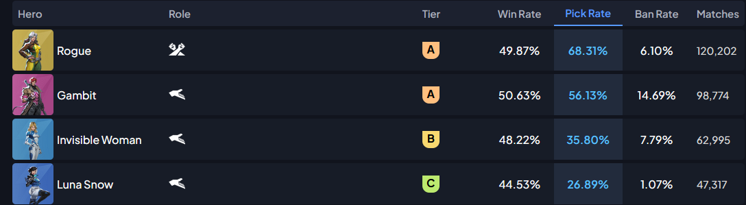 So whats the general thought on Rogue?I really like her playstyle but I feel her numbers need a bit more juice