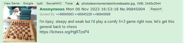Looking for a chudcel to play some 3+2 with. https://lichess.org/lqY8kXsA