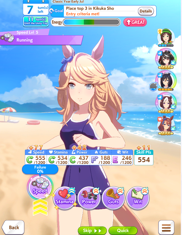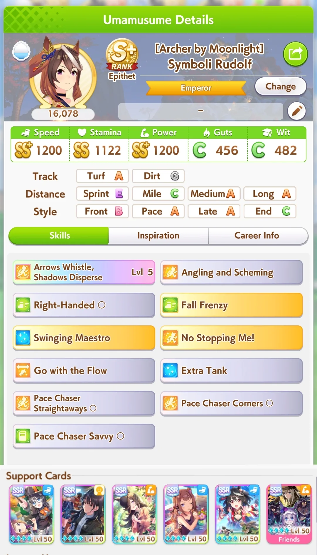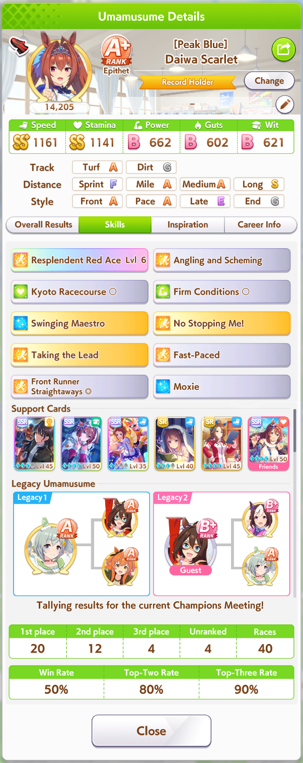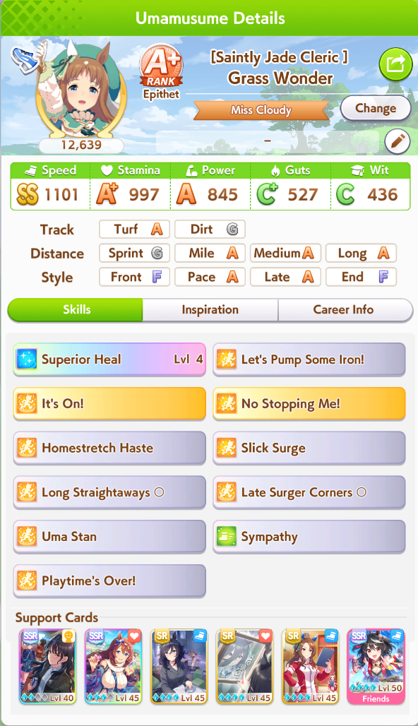 Definitely sub-optimal with low stats and no Long S, but I didn't want to grind more runs when I'm on KSB borrow.