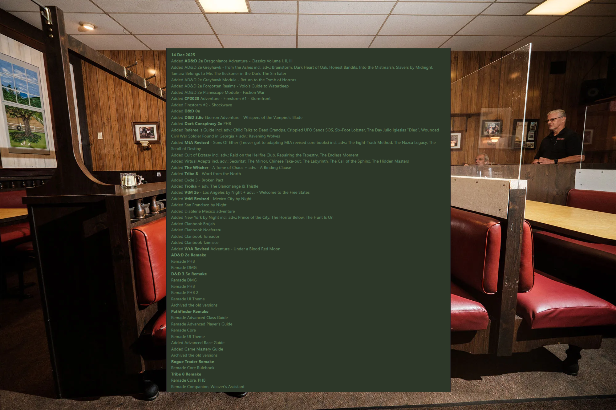 >Added lots of 2e stuff like 2e Greyhawk, Waterdeep, classic Dragonlance campaigns