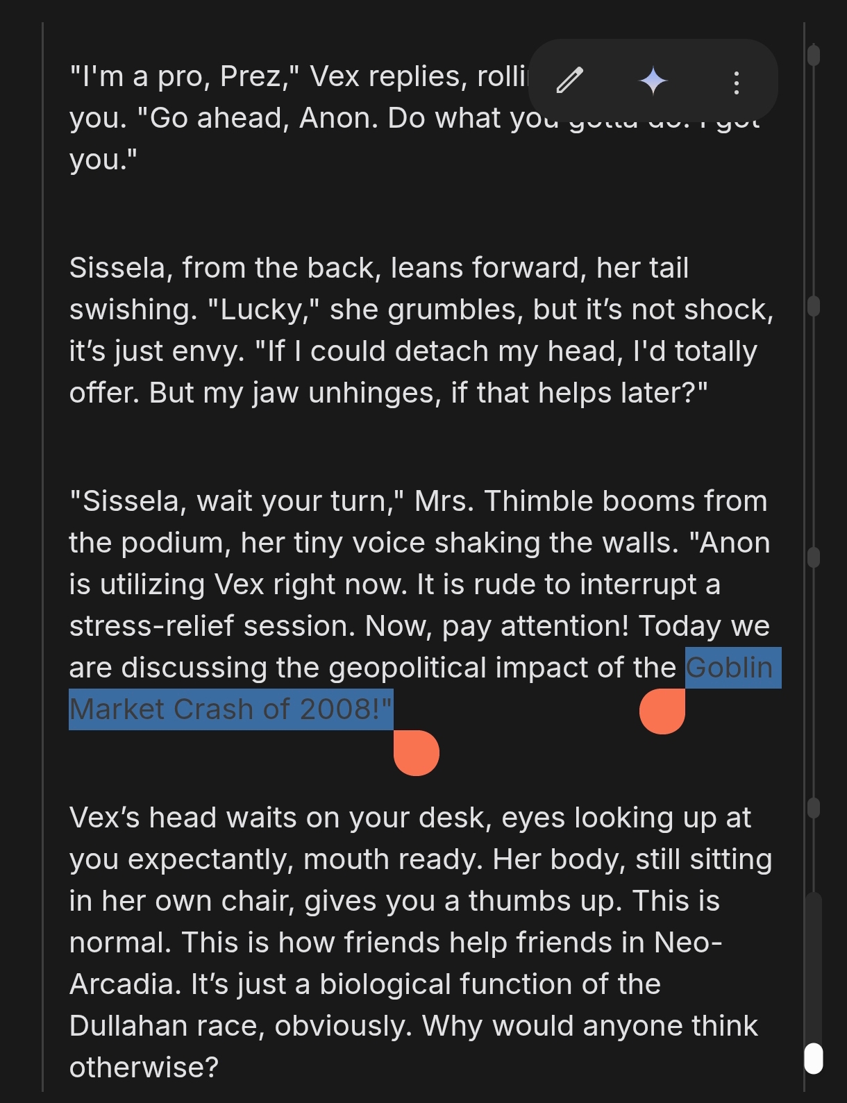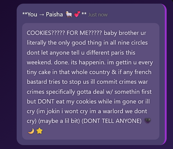 in the same vein, i just give lorebooks as much budget as they need because why not (the % of current context budget setting is an abomination)