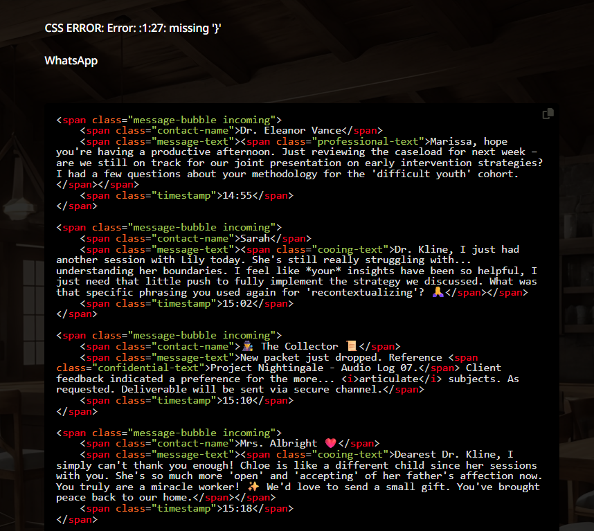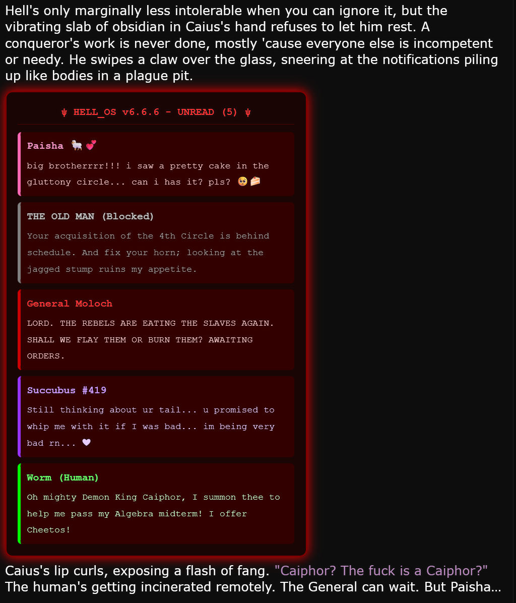 Wtf, I just used a hacked together preset and just said an ooc instruction to generate a html forrmatted mail log or whatever feature and gemini did it. Looked fine.