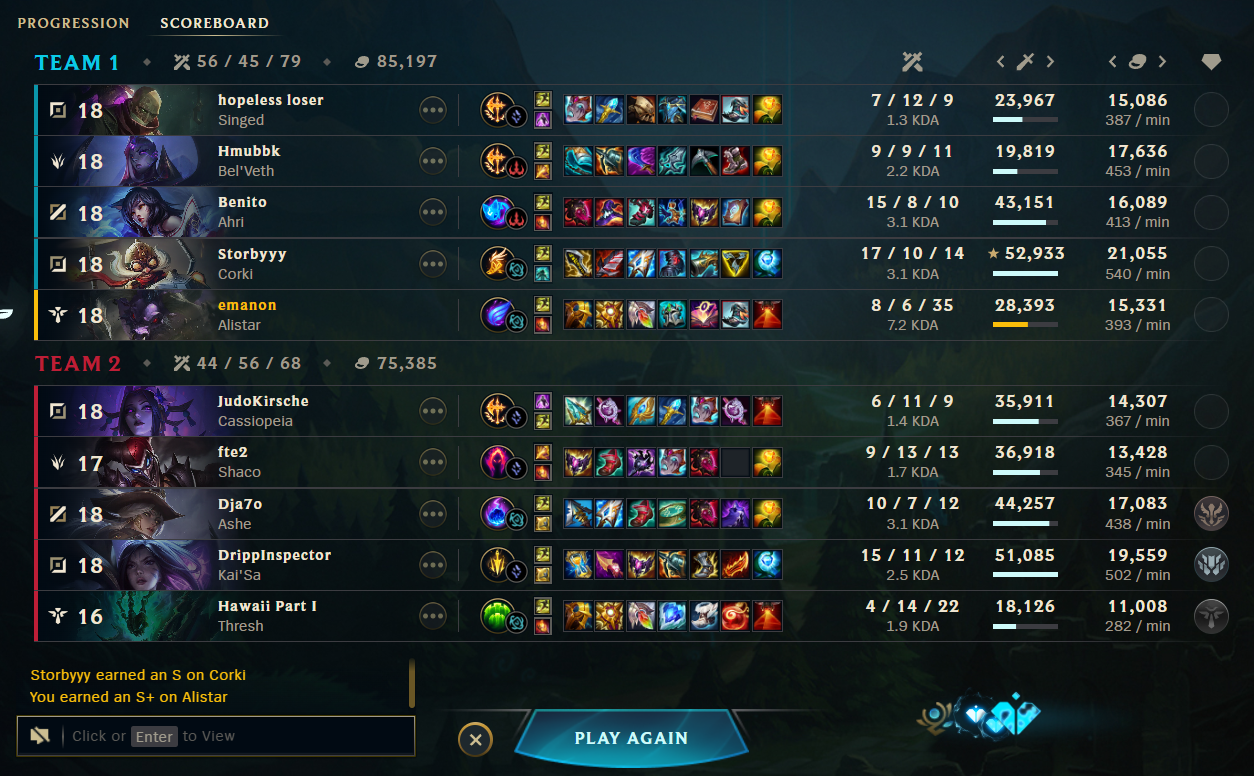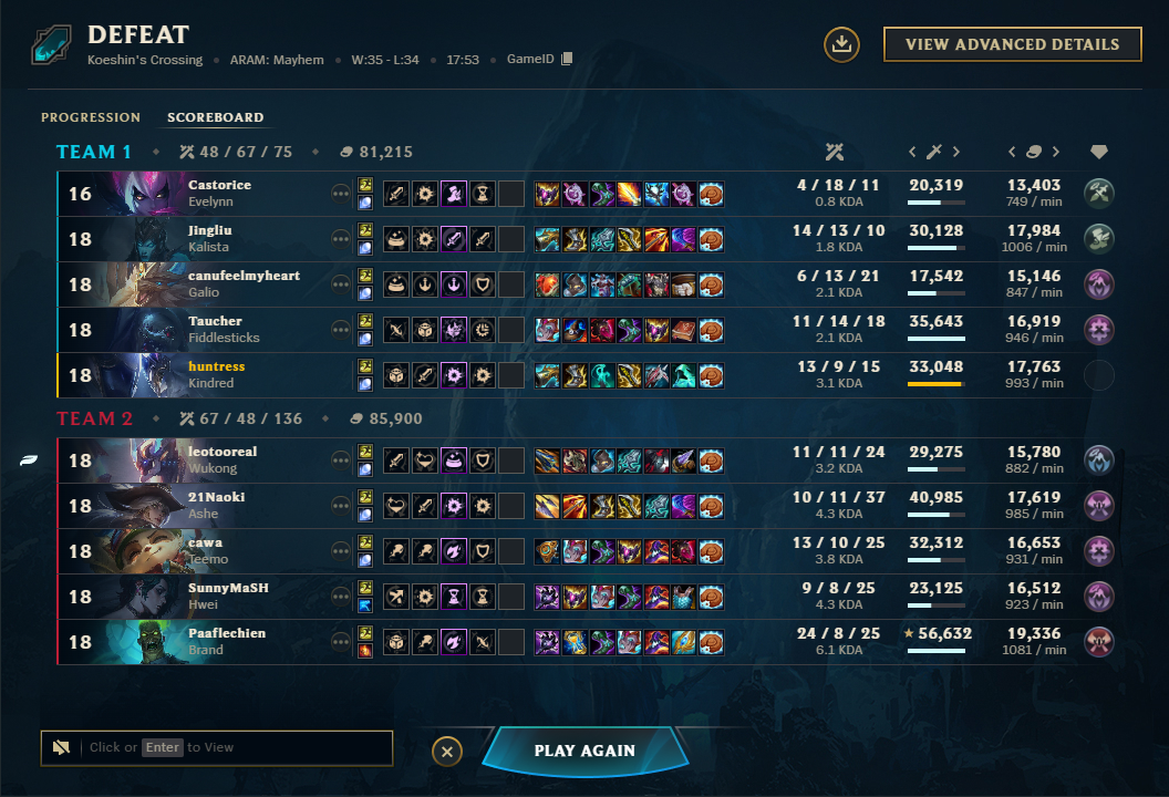 >>550164153I played a few as a free agent and that's just hell. I have no clue why anyone would subject himself to this.but 5 manning this shit with friends? when all of you actually want to win? peak league experience. then you can feel why this game is still around. I complain about it now but in the end I had more fun today and yesterday than playing rankeds, norms and vgs in a whole past month. aram clash sucks ass doe