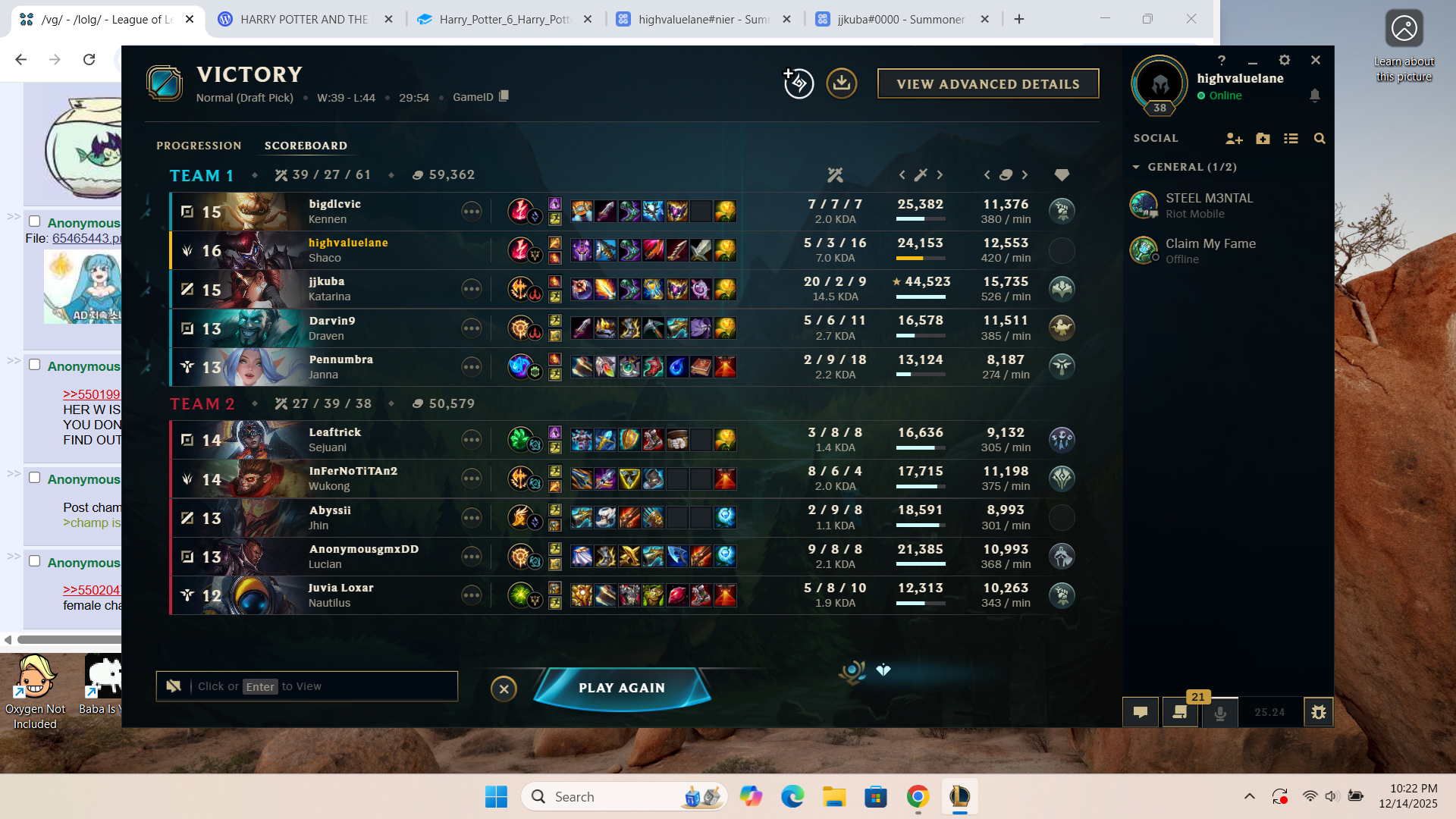 Previous: >>549992364 >Official Wiki, Patch Notes and PBEhttps://wiki.leagueoflegends.com/en-us/ >Builds/Account Statshttps://u.gg/https://www.op.gg/https://lolalytics.com/ >Model Viewerhttps://www.modelviewer.lol /lolg/ OP pastebinhttps://pastebin.com/8xZvBfnZ