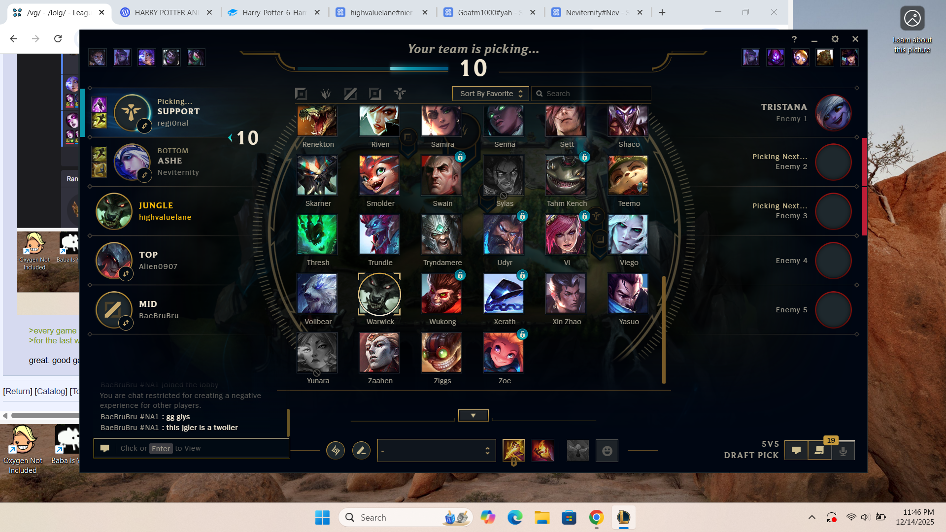 >top demanding people to ban xyz champs>gets upset people banned what they wanted to ban insteadban it yourself???