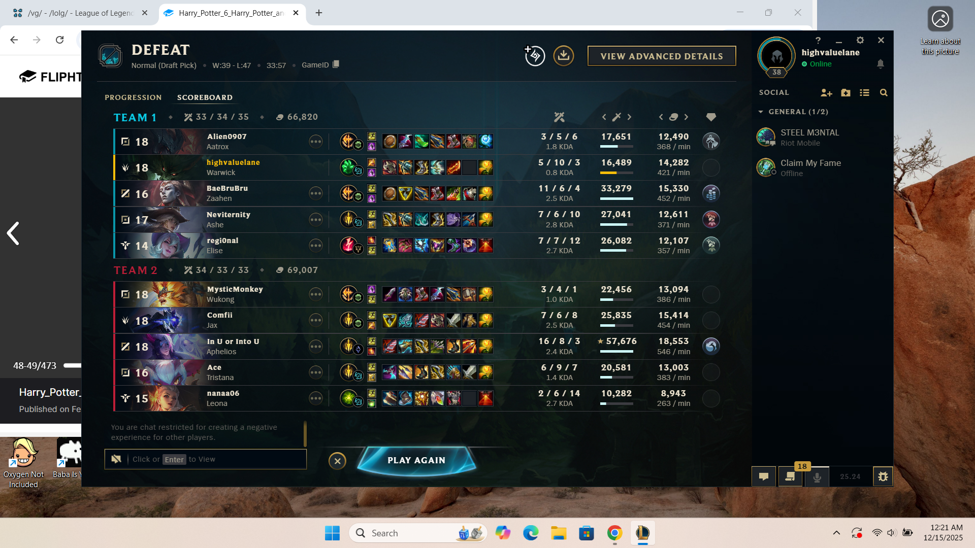 Havent booted up league in two daysThe last game I played had an autofilled jungler than went 0/6/1 against the 12/1/8 enemy shaco jungle main by 15 minutes (we ff'd on the dot)What is the point of trying to climb when you lose more lp than you gain and you get your lp robbed from you like that?