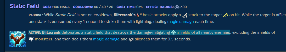 >>550091793To prove my point, I will splurge out two Warden champion ideas without much thought.They will take elements from other champs but the point is to show that that doesn't matter much and Riot just doesn't like wardens because they're Wardens because they want the game to be pick-into-teamfight until the end of time.(Not!Poppy)Reduces damage taken from range based on both armour and MR. Deals additional damage based on armour, MR, and AP.Q- Charge knockback dash. Slows when channeling. W- Mobile Jarvan ult- traps enemy inside aura around self. (I was imaging it'd be the size of Poppy's W but I'm not sure if making it bigger or smaller would make it stronger or weaker.) You can move towards your target to attack the enemy but they'd also be able to move further away since the aura is centered around (YOU)Granted, you can use Q and W to engage and lockdown but it's so telegraphed, slow, and requires Chinese timing that it's probably not efficient. I'd still say they're still a Warden because even Braum can "engage."E- Non-decaying, permanent shield for you and ally (only works if you have an ally.) This is their gimmick.R- Passive: Basic attacks lower cooldown of Q, W, and E (I'd imagine they'd all be fairly long cooldowns,) Active: Gains an aura that slows, deals magic damage and grounds around self. It grows larger the longer you damage enemies with it.(Not!Shen)Has a clone like Ekko/Zed that copies your movements, attacks, and abilities on a delay. It can only take magic damage while you can only take physical damage. All of his abilities would cost health.Q- Shen W but centered around yourself and clone.W- Berserk on-hit modifier.E- Projectile that explodes and silences those hit for a second.R- Shield and heal ally for a big chunk of your health and make self invulnerable. Call my ideas bad, I dare you. I just think Riot is biased. They don't seem to have anyone that wants to make tanks. The second one is bad.