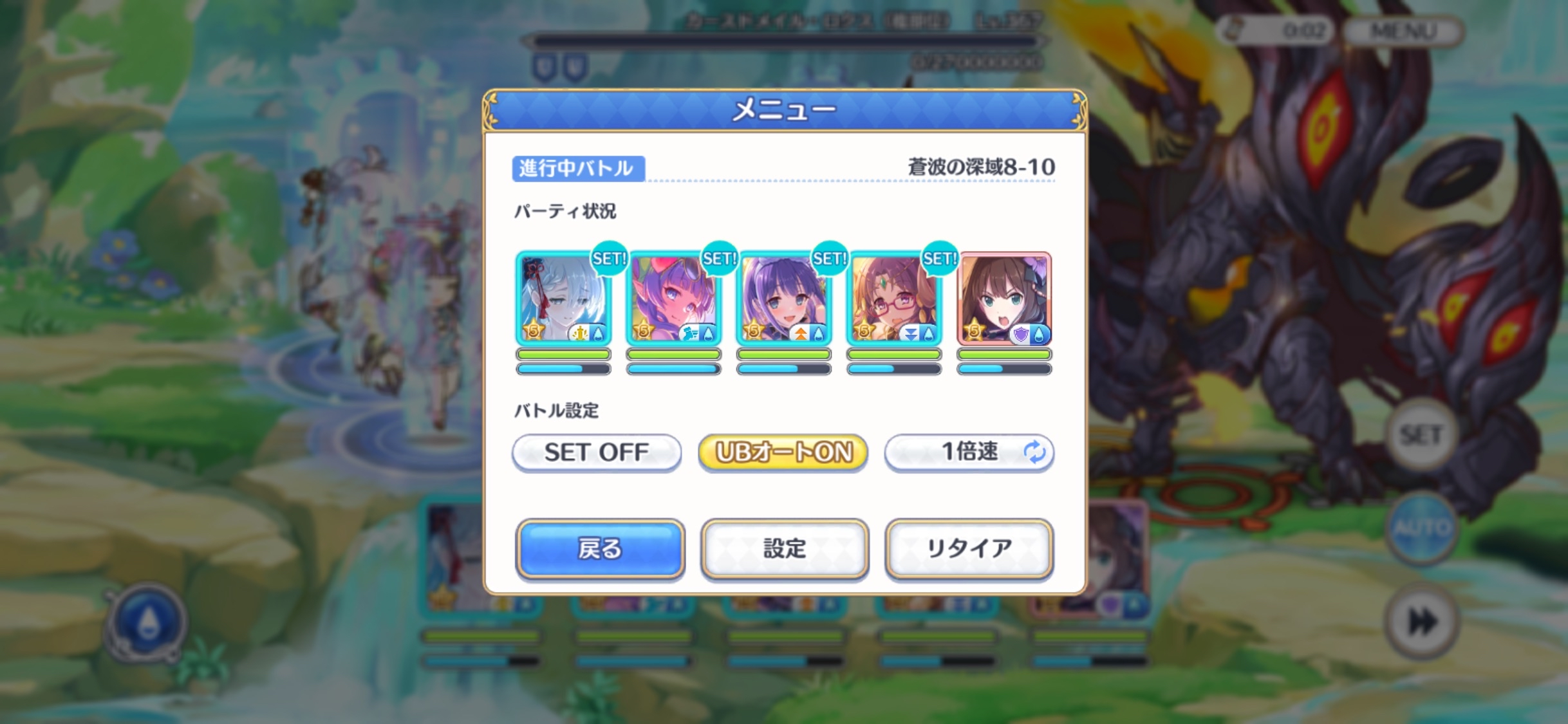 水8-10 クリミソラお試し(ソノ無し)しょう。さんTL参考TP5-51:30 開始 【ー〇〇〇ー】OFF1:07 ボスUB後オートON1:05 ユキノ 【〇ー〇〇ー】OFF0:58 水飴 ジャッジメント吹き出し視認後オートON【〇ー〇〇ー】ON0:39 水飴 【〇〇〇〇ー】0:02 討伐(速いと4sくらい)